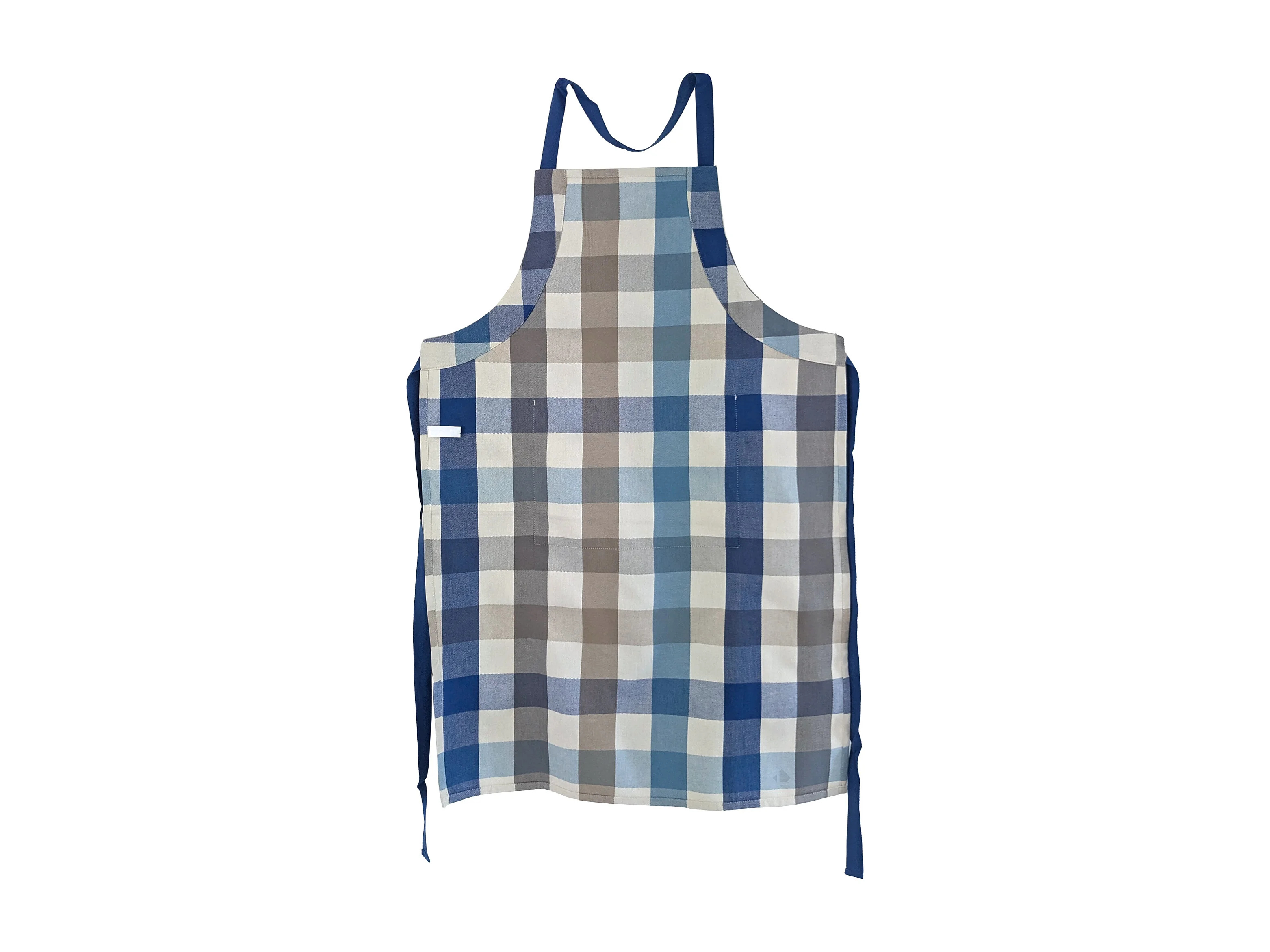 Tablier de cuisine toile TERRA avec poche vichy bleu