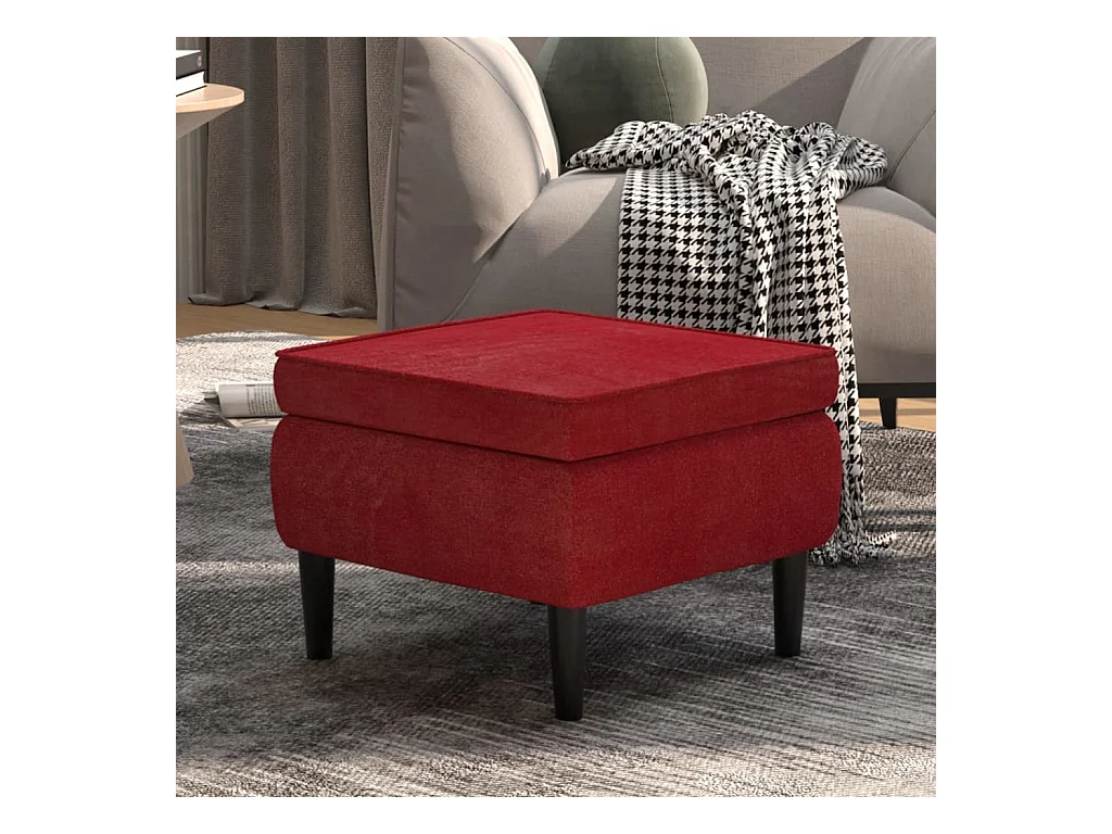 Tabouret avec pieds en bois Rouge bordeaux Velours REO42562