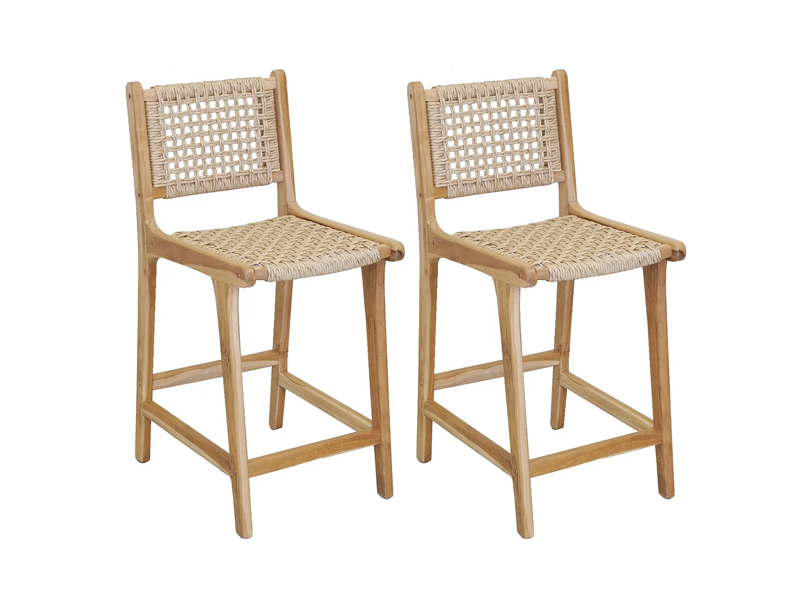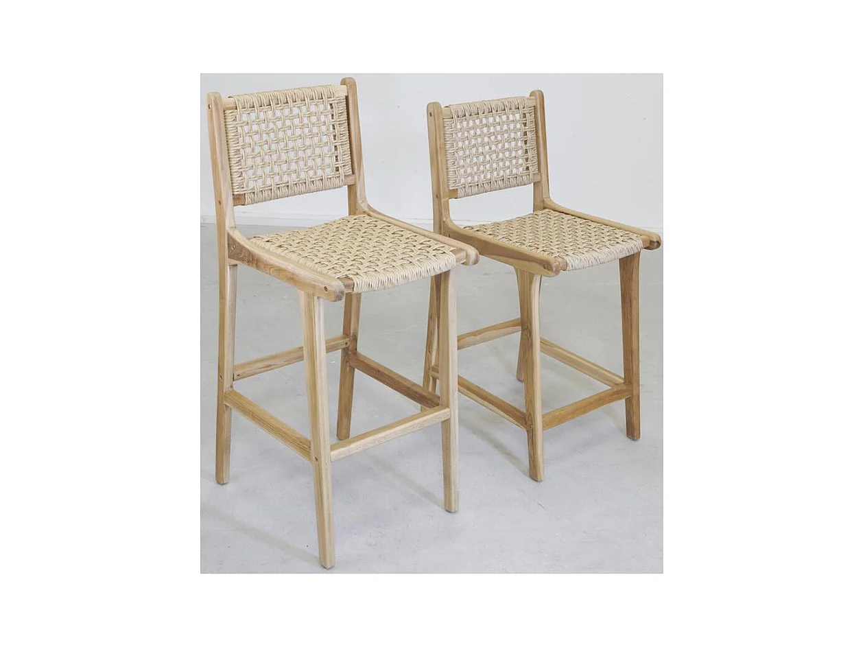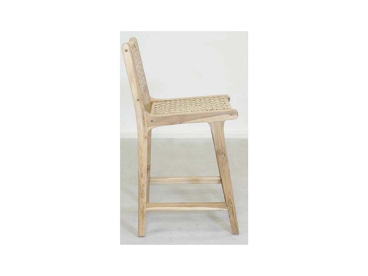 Tabouret bar en teck naturel et cannage BAIA (Lot de 2) Hauteur 100 cm