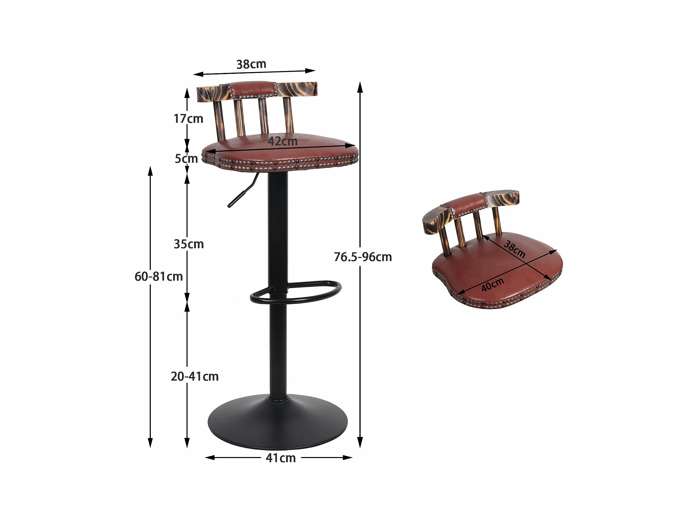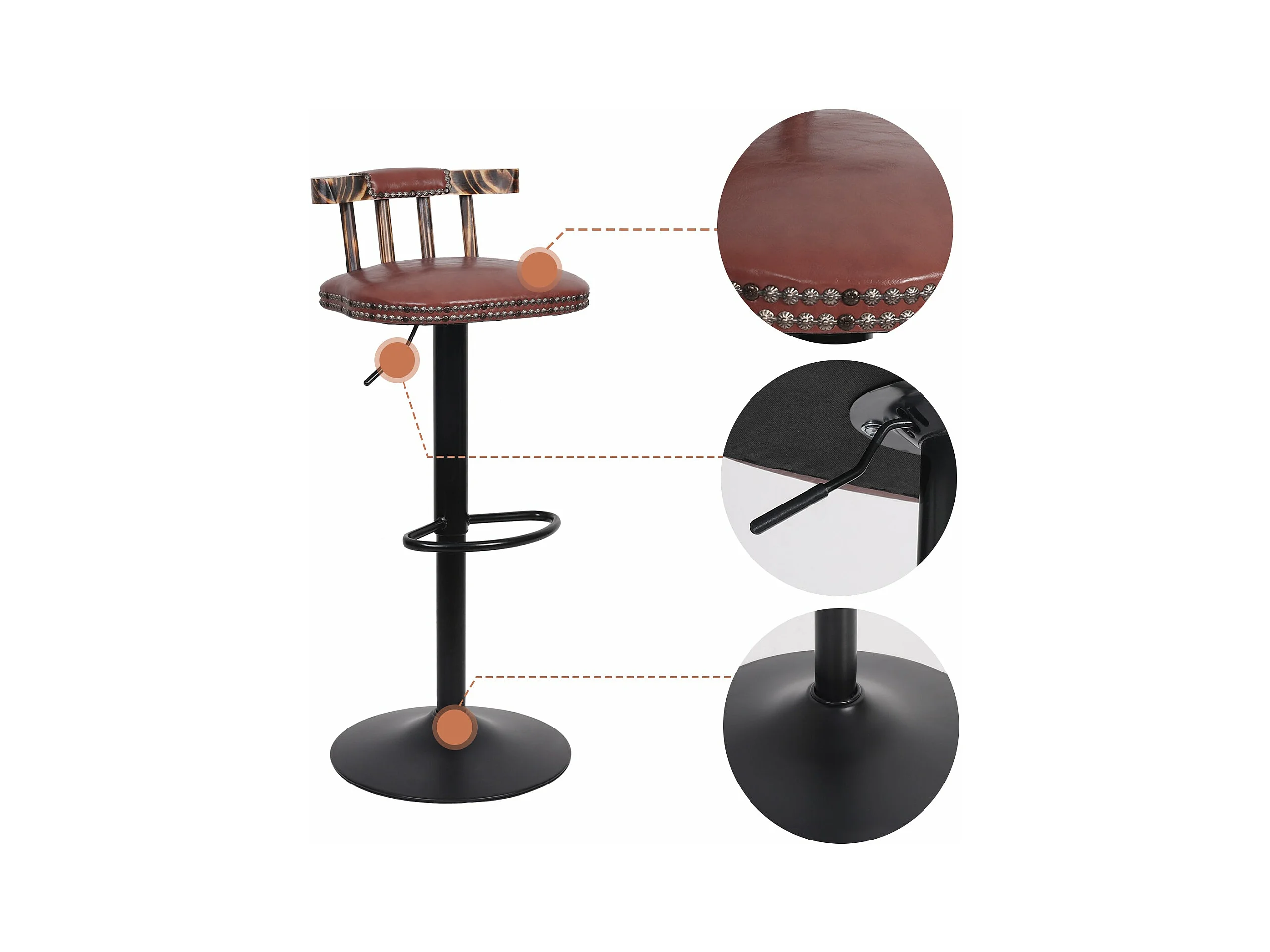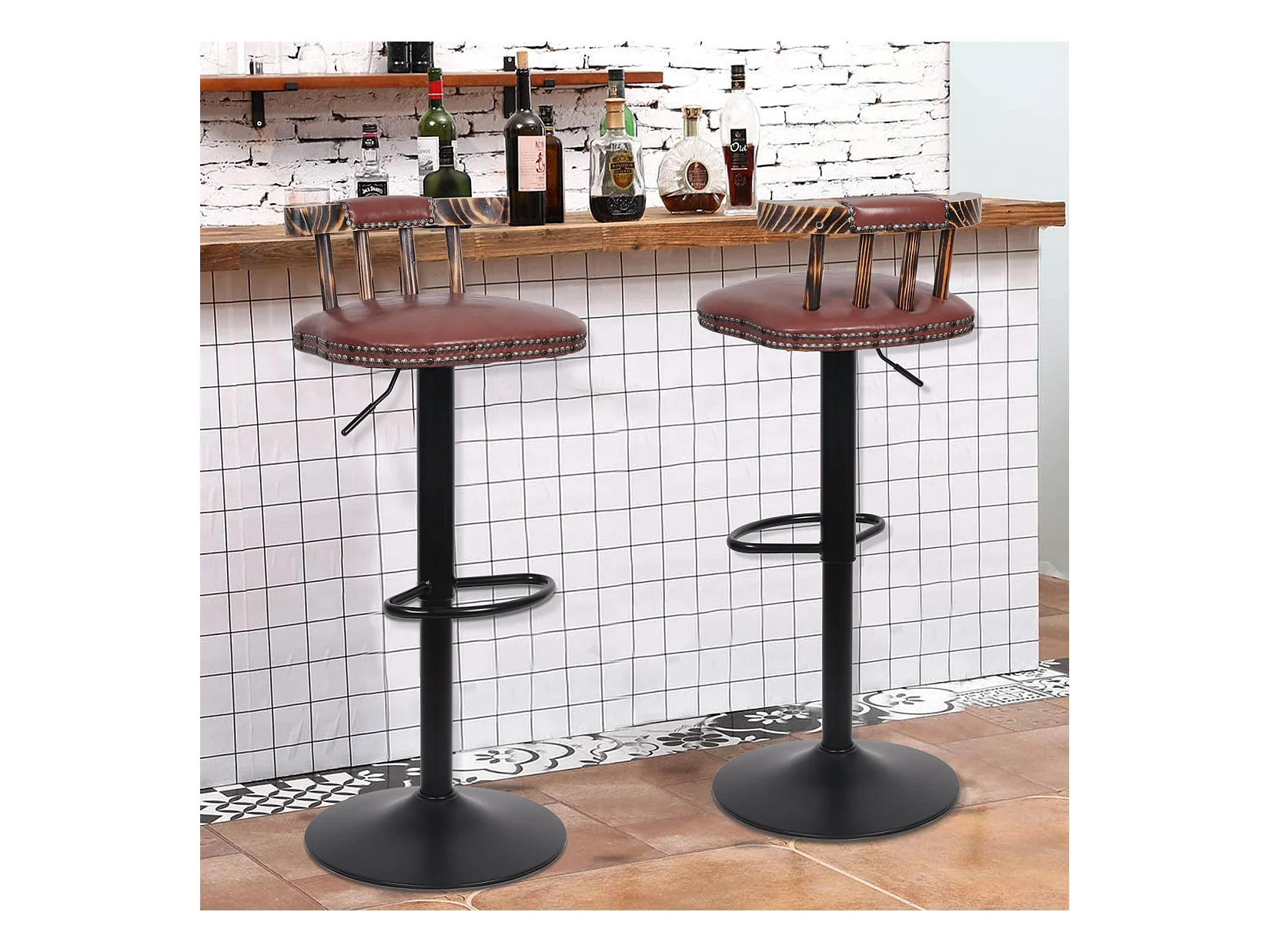 Tabouret bar industriel hauteur réglable lot de 2 chaises de cuisine en cuir pu vintage avec dossier et repose-pieds 42x39x76.5cm à 98cm