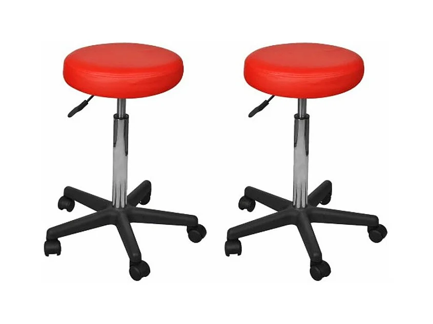 Tabouret bas à roulettes réglable simili cuir rouge Tawen - Lot de 2
