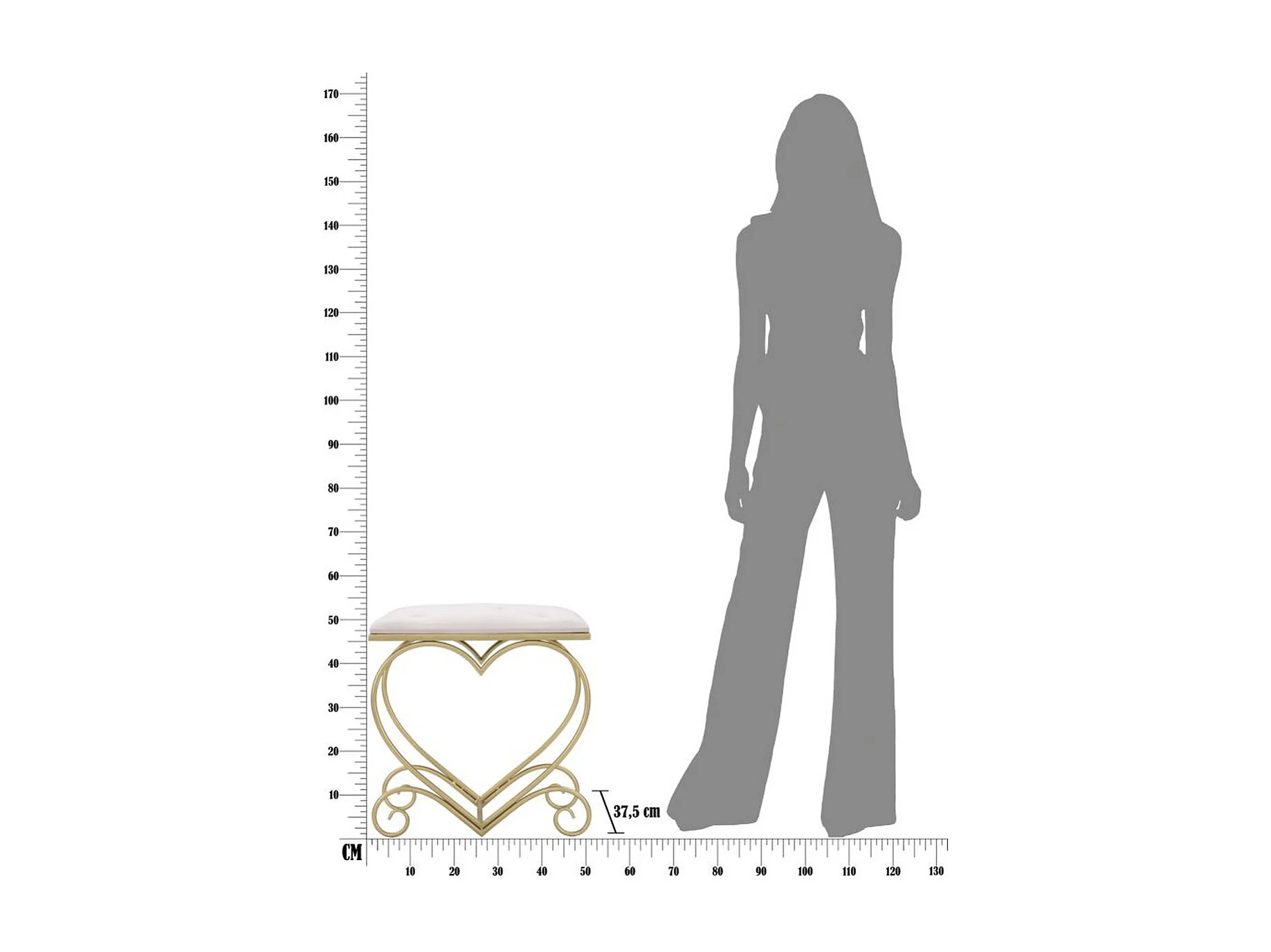 Tabouret Bas Cœur 16, Or, 50x37,5x51,5 cm, Seven Design
