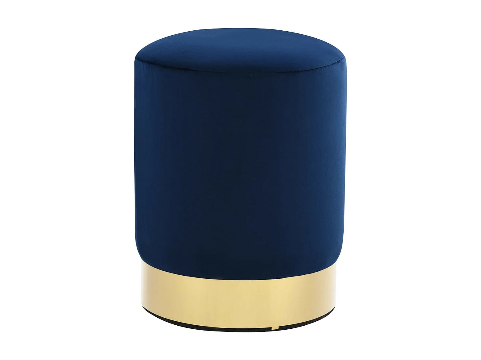 Tabouret bas design velours bleu marine et metal doré Sinza