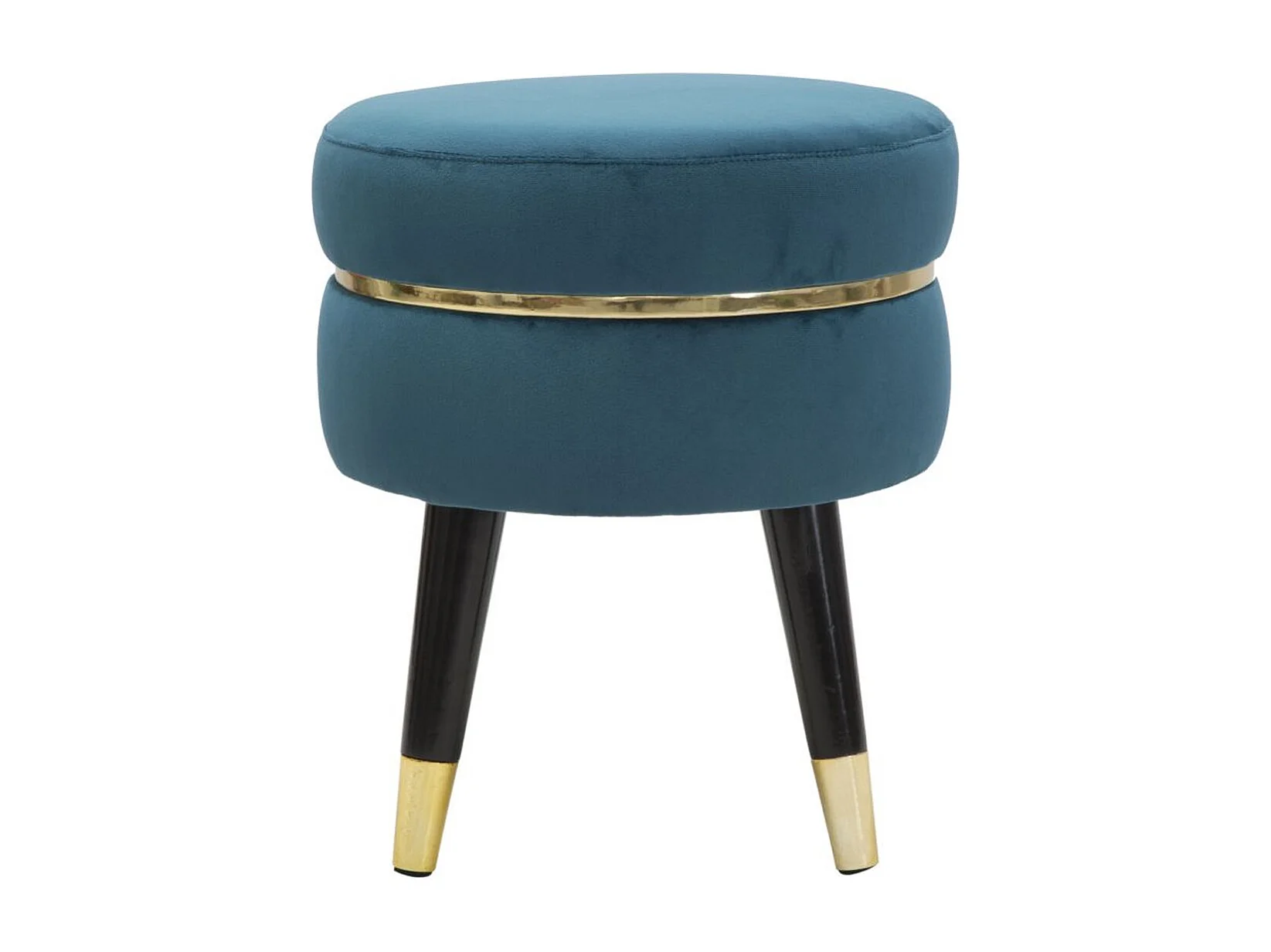 Tabouret Vert moutarde et doré Velours 28 x 36 cm