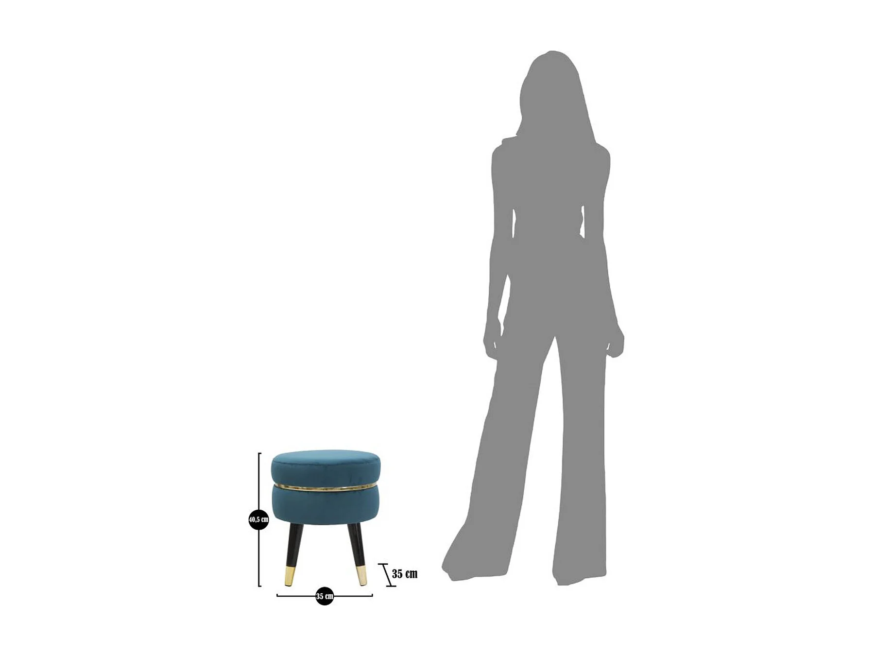 Tabouret rond rembourré tissu vert et pieds en bois - Diamètre 39 x Profondeur 38 x Hauteur 38 cm