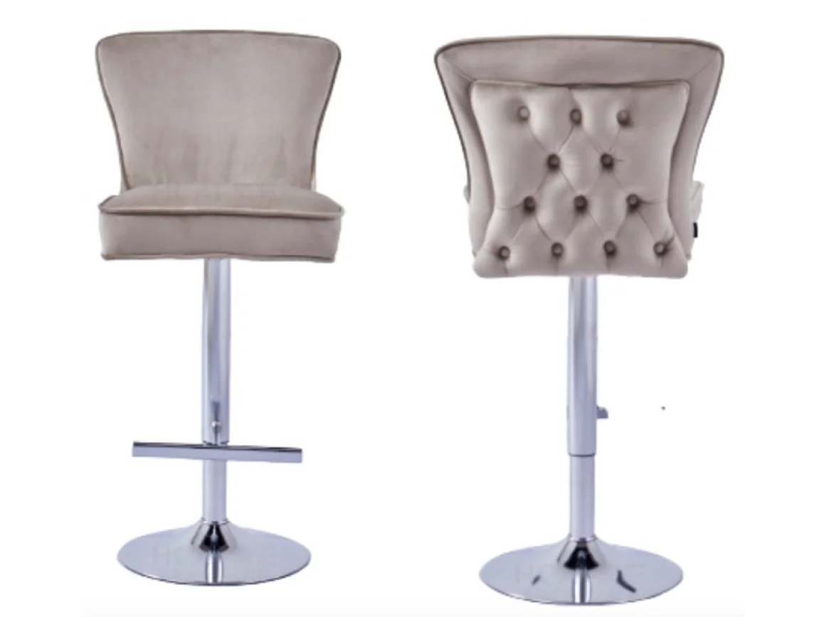Tabouret capitonné velours et et pied chromé Gaby - Lot de 2-Couleur Beige foncé