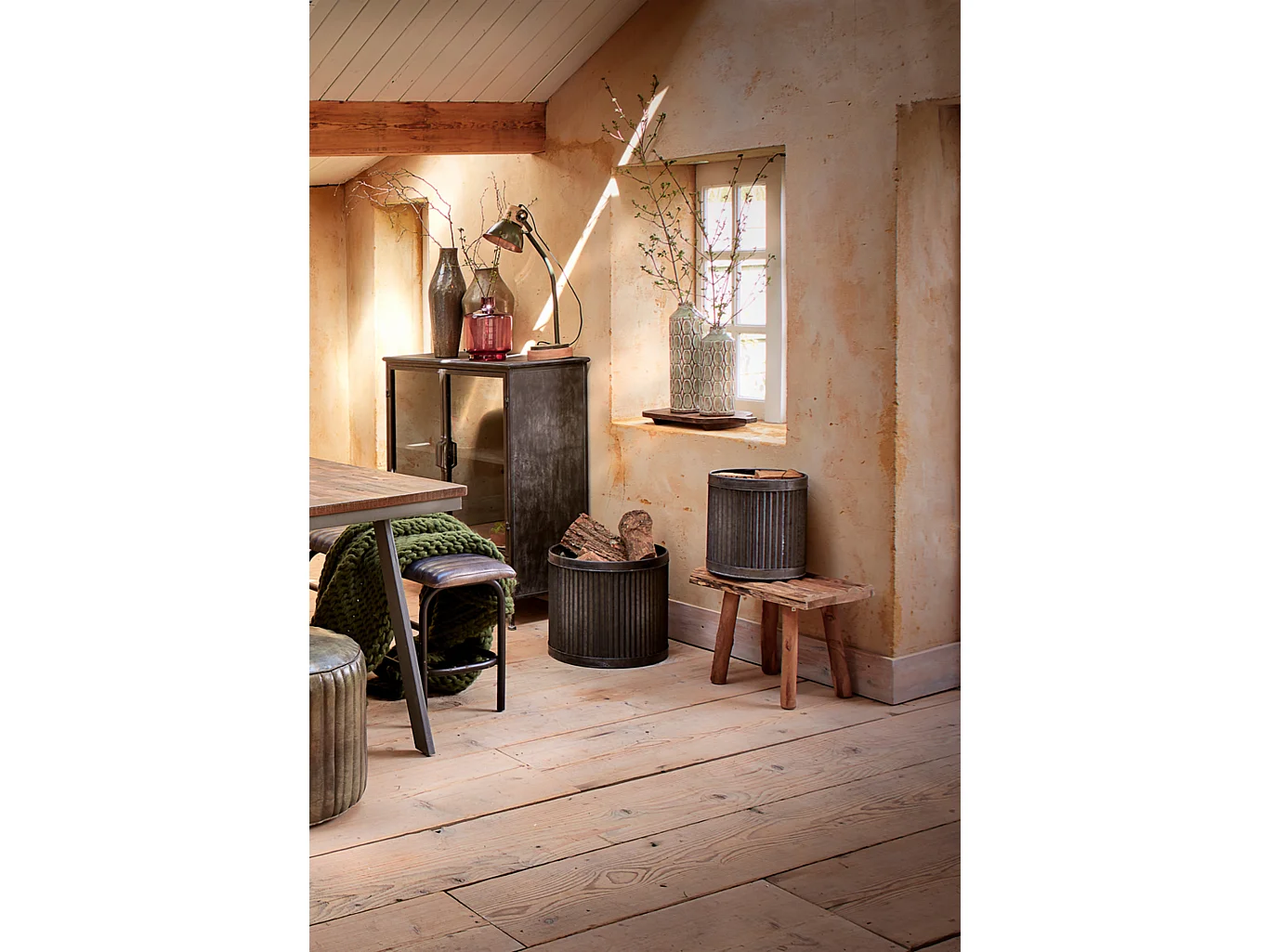 Tabouret en bois et métal 31x31x66h cm