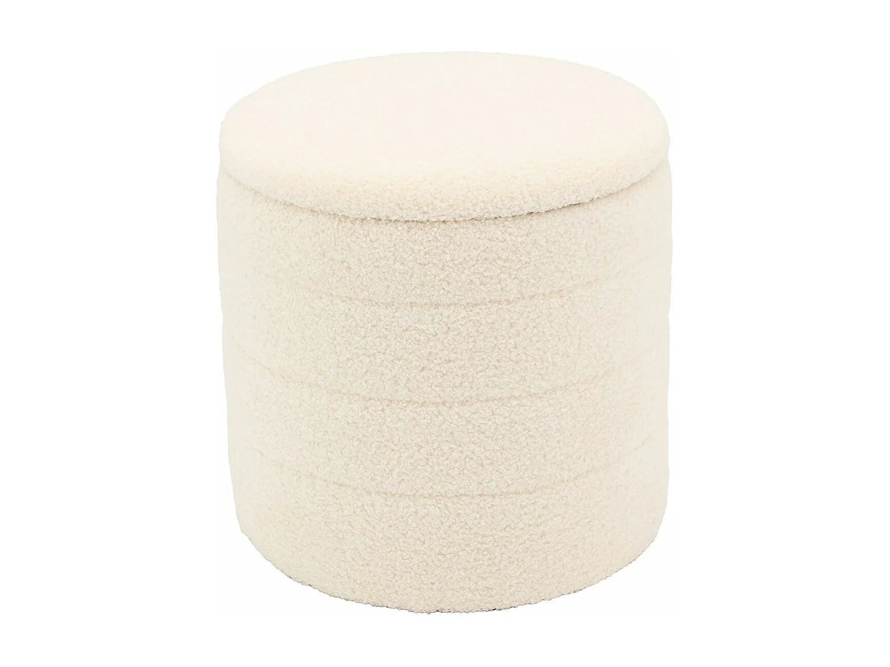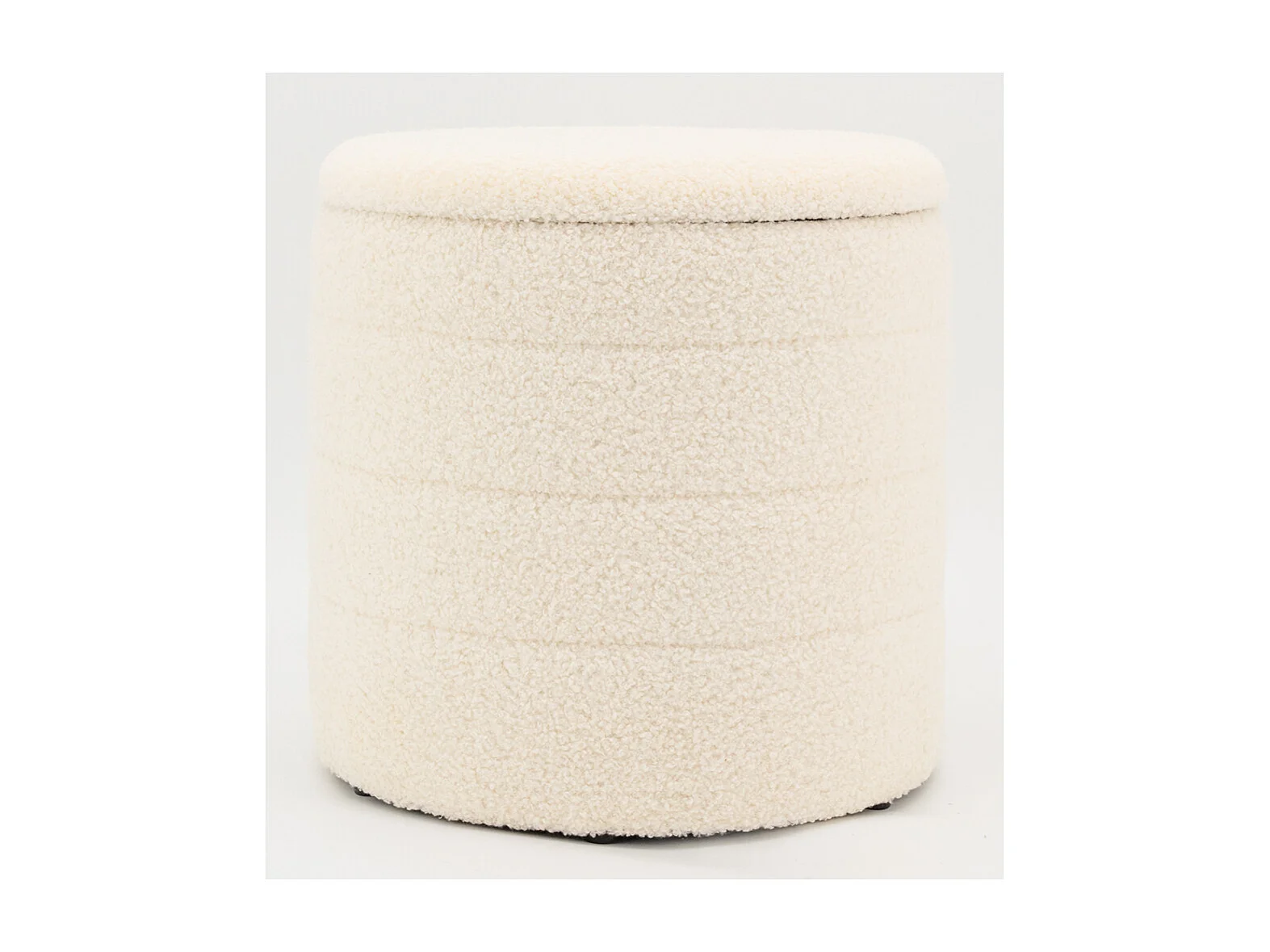Pouf avec coffre en tissu à bouclettes Blanc D 35 x H 37 cm