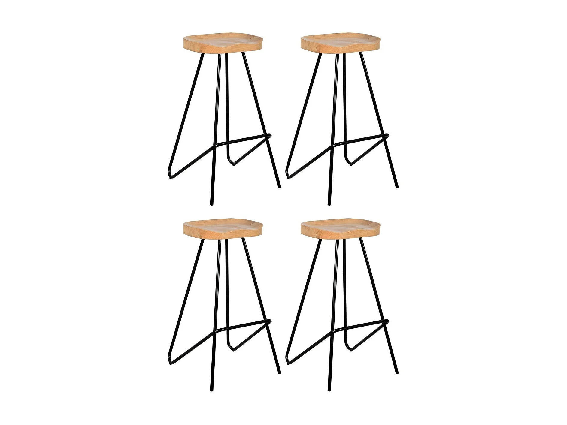 Tabouret de bar assise moulée en métal et bois d'orme huilé Lot de 4