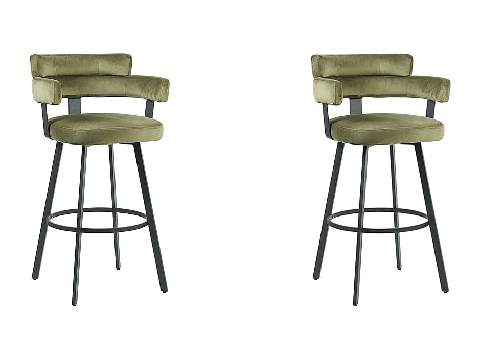 Tabouret de bar Bardio - Hunter - Velours - Hauteur d'assise 75 - lot de 2