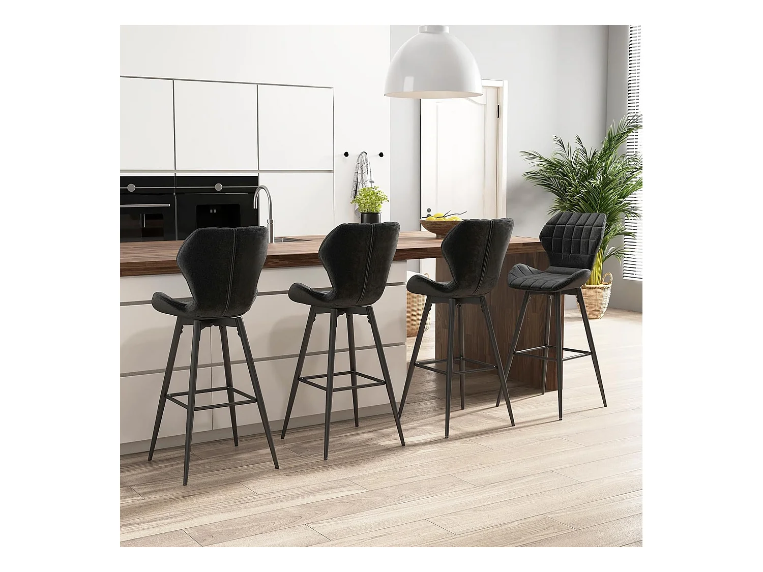 Chaise de bar tissu noir et pieds métal noir Cassie - Lot de 4