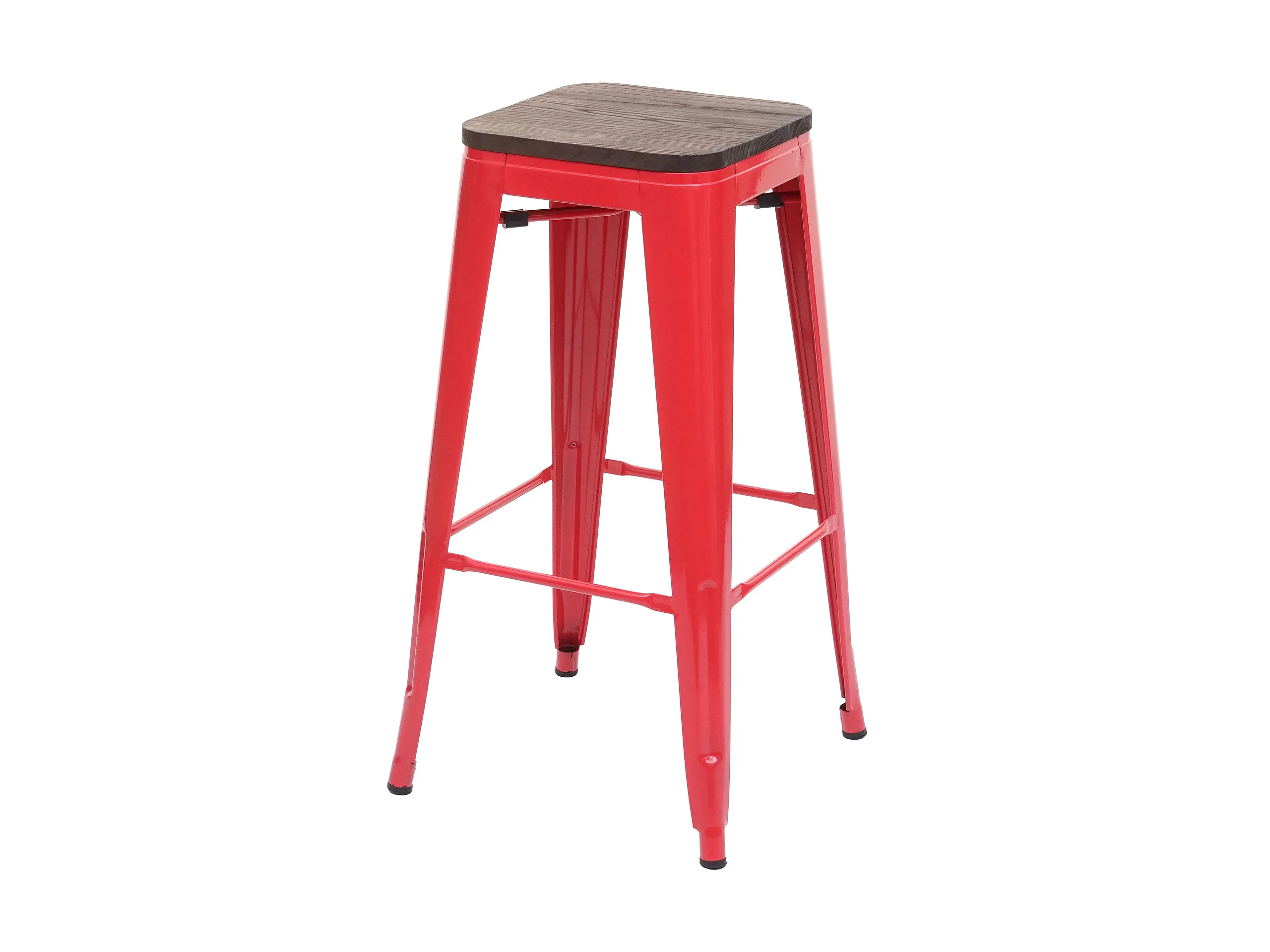 Lot de 2 chaises hautes en métal et bois bordeaux