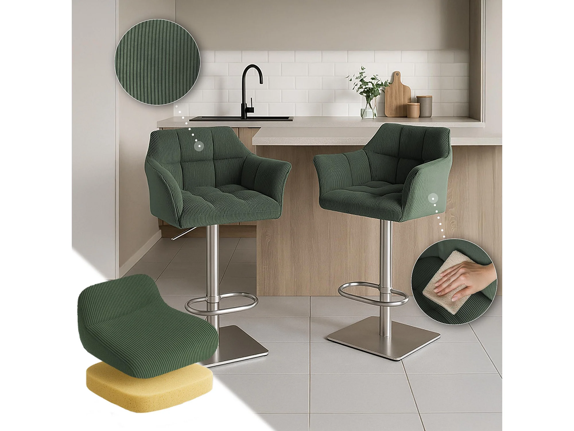Tabouret de bar - Cordon & Acier inoxydable - Vert - Damaso