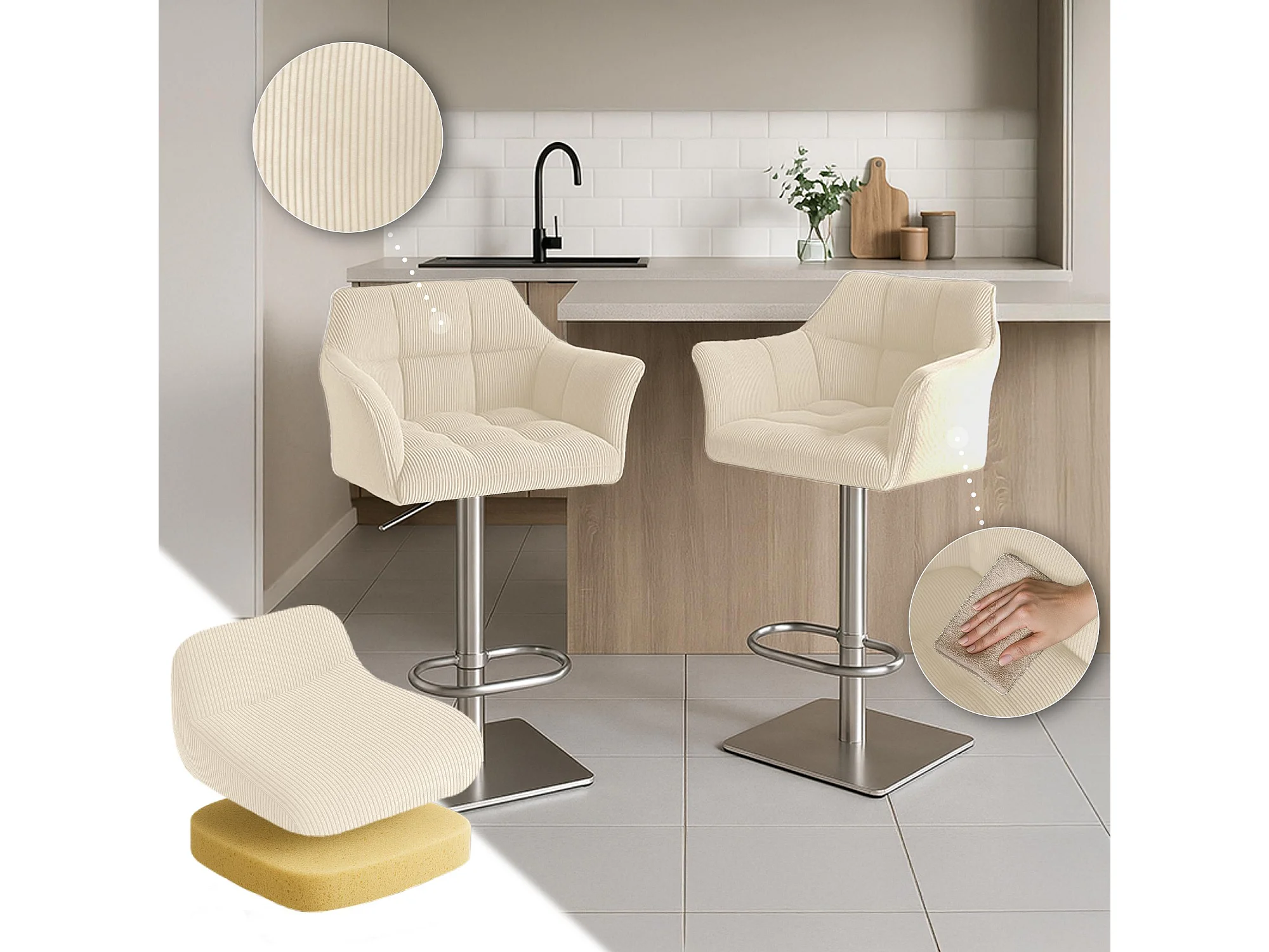 Tabouret de bar - Cordon & Noir - Crème - Damaso