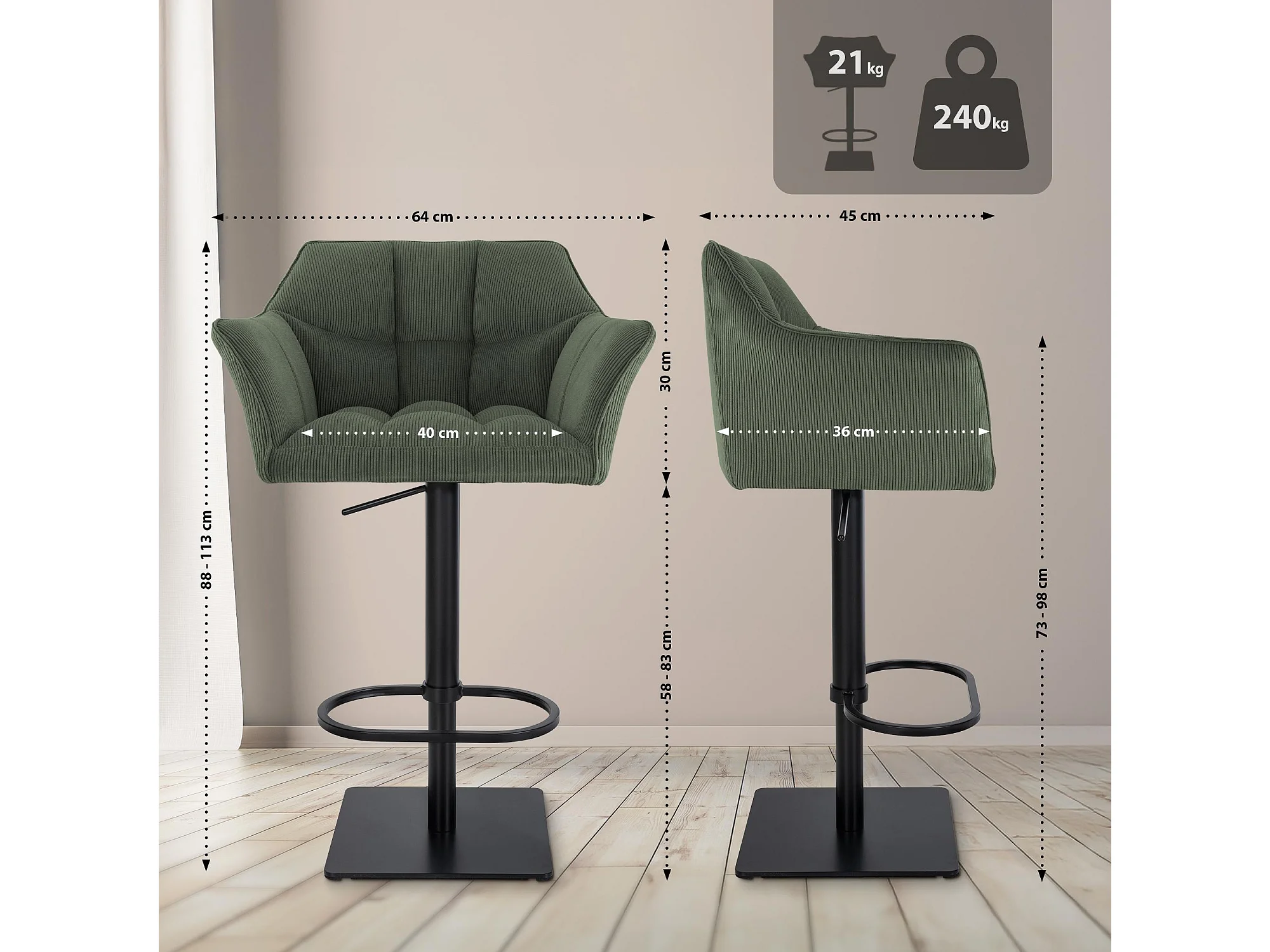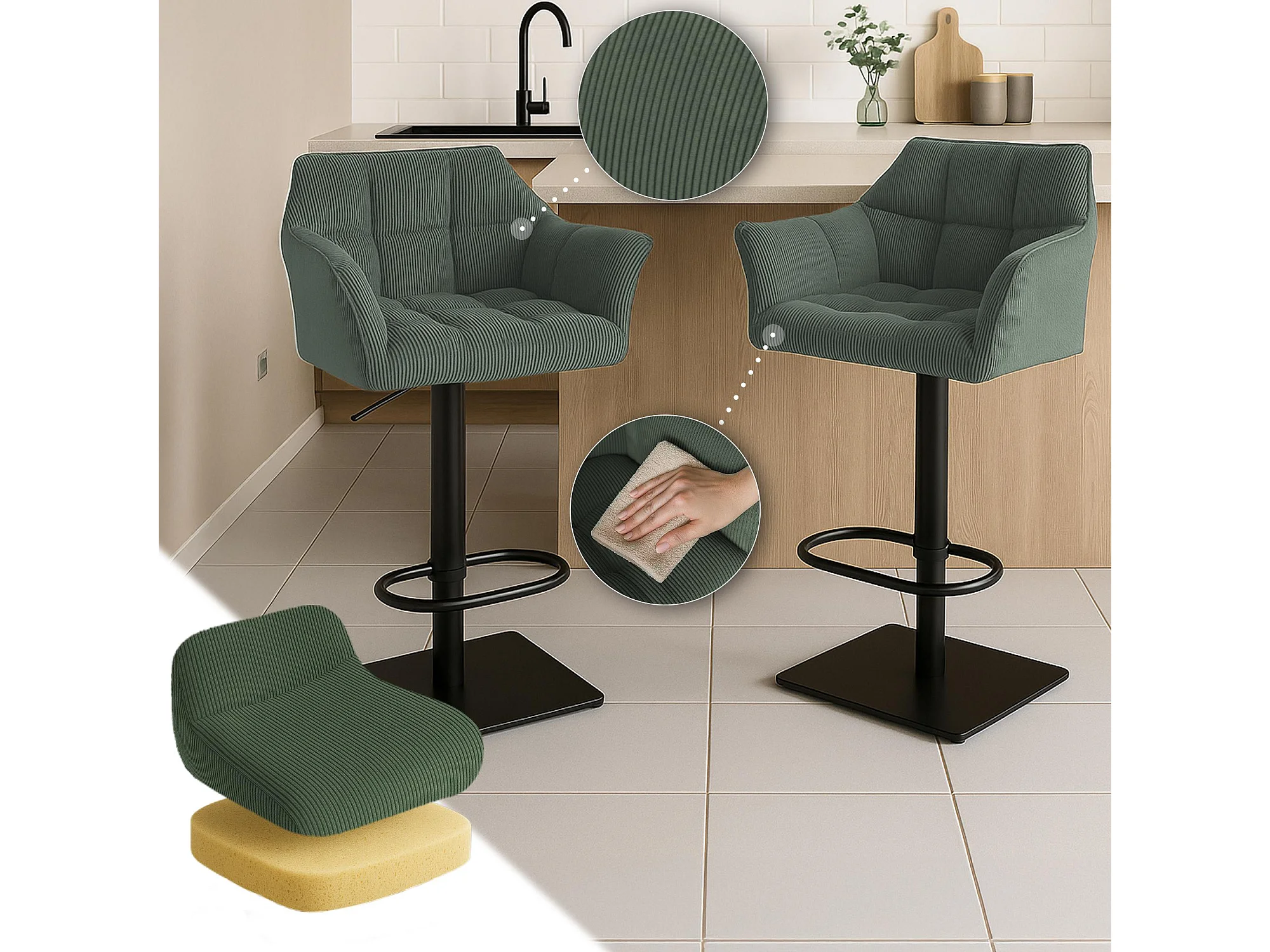 Tabouret de bar - Cordon & Noir - Vert - Damaso