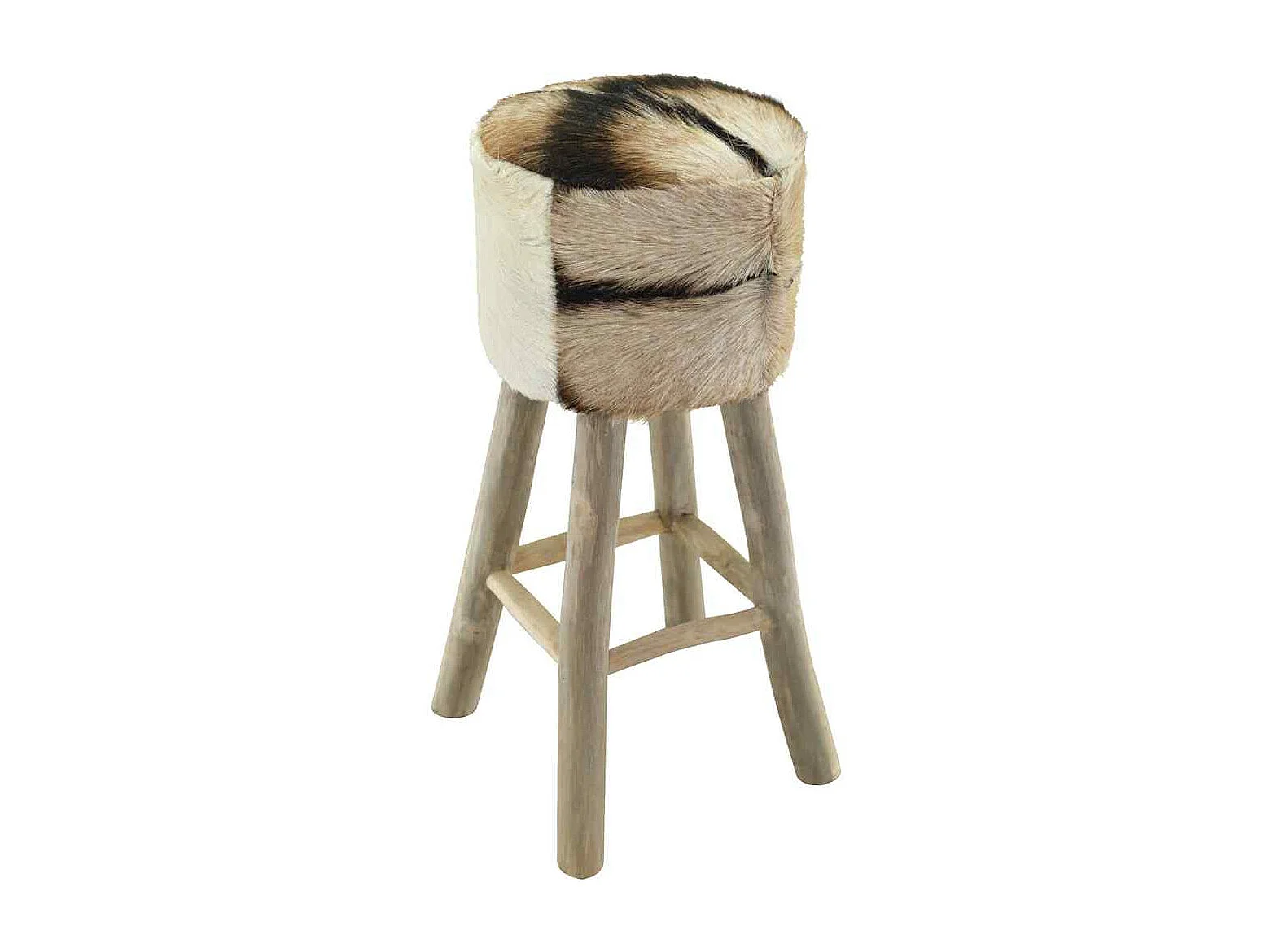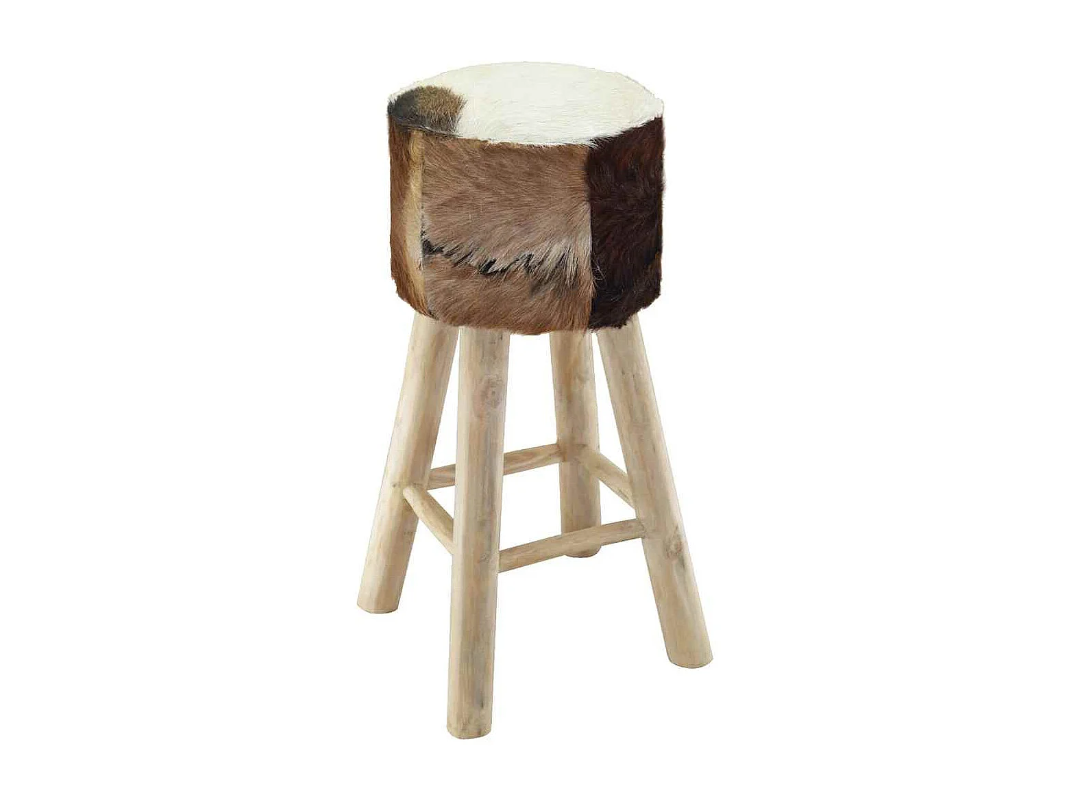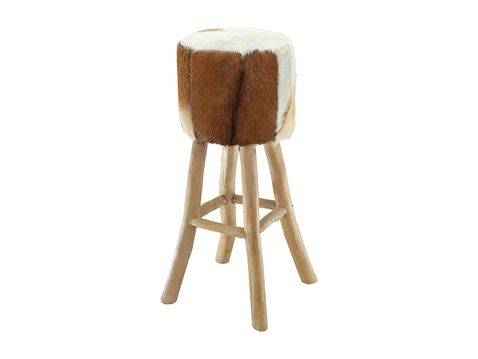 Tabouret de bar cuir de chèvre et bois de teck solide