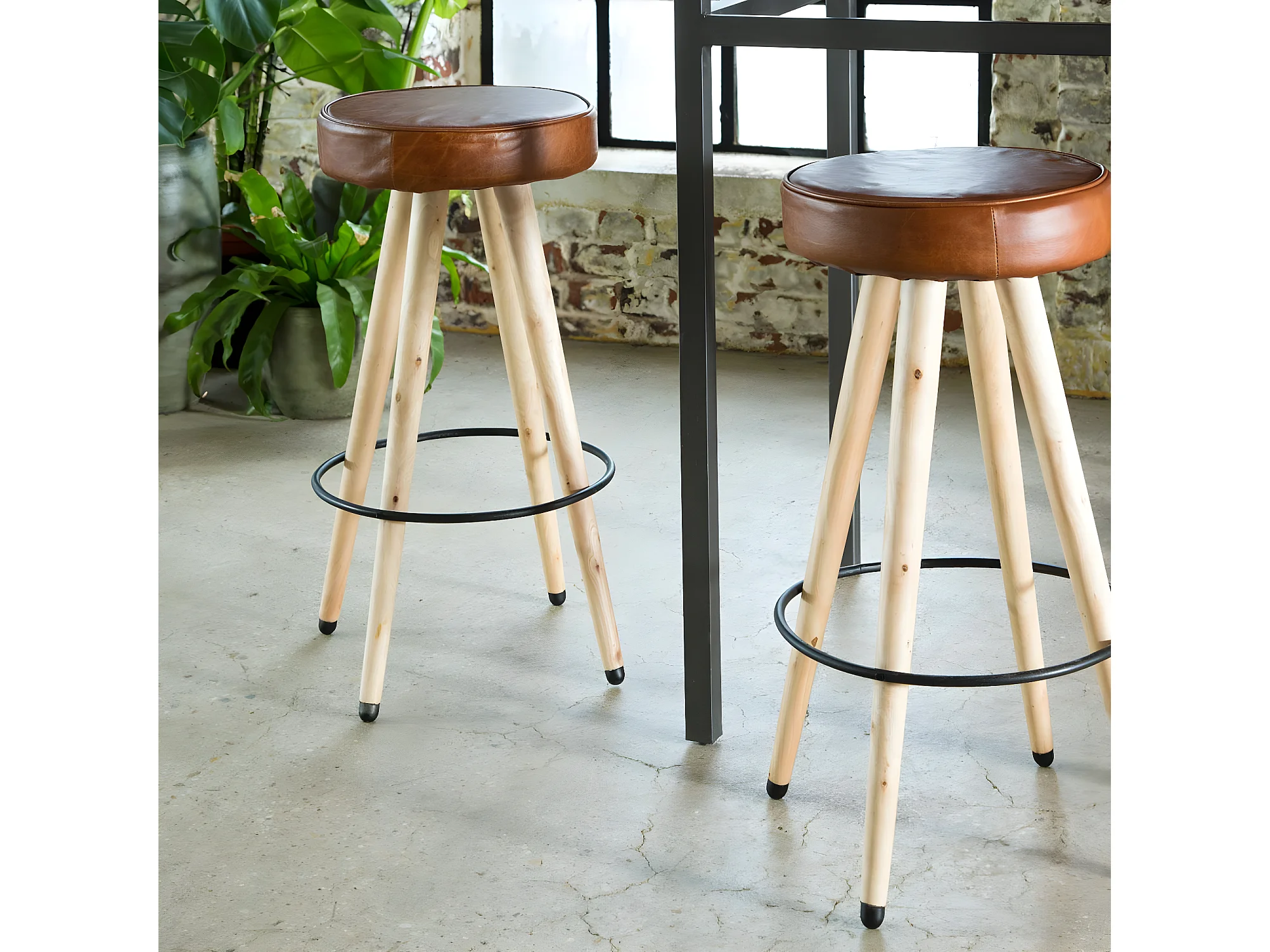 Chaises de bar lot de 2 noir et marron cuir véritable