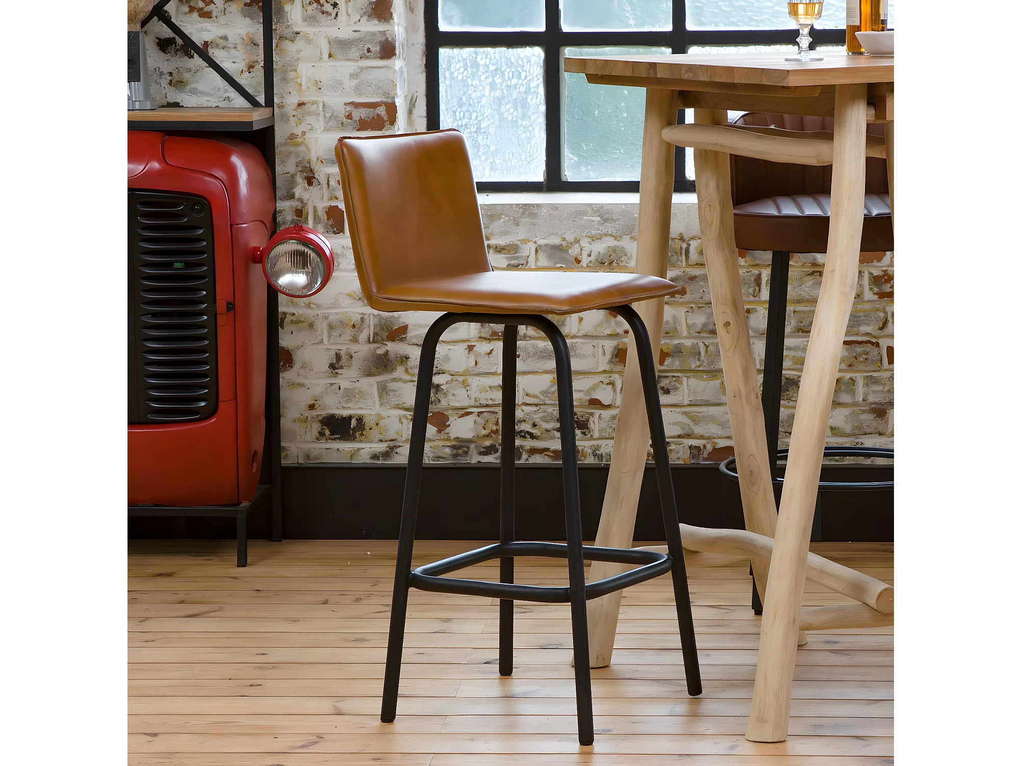 Tabouret de bar en cuir marron Louise (lot de 2)