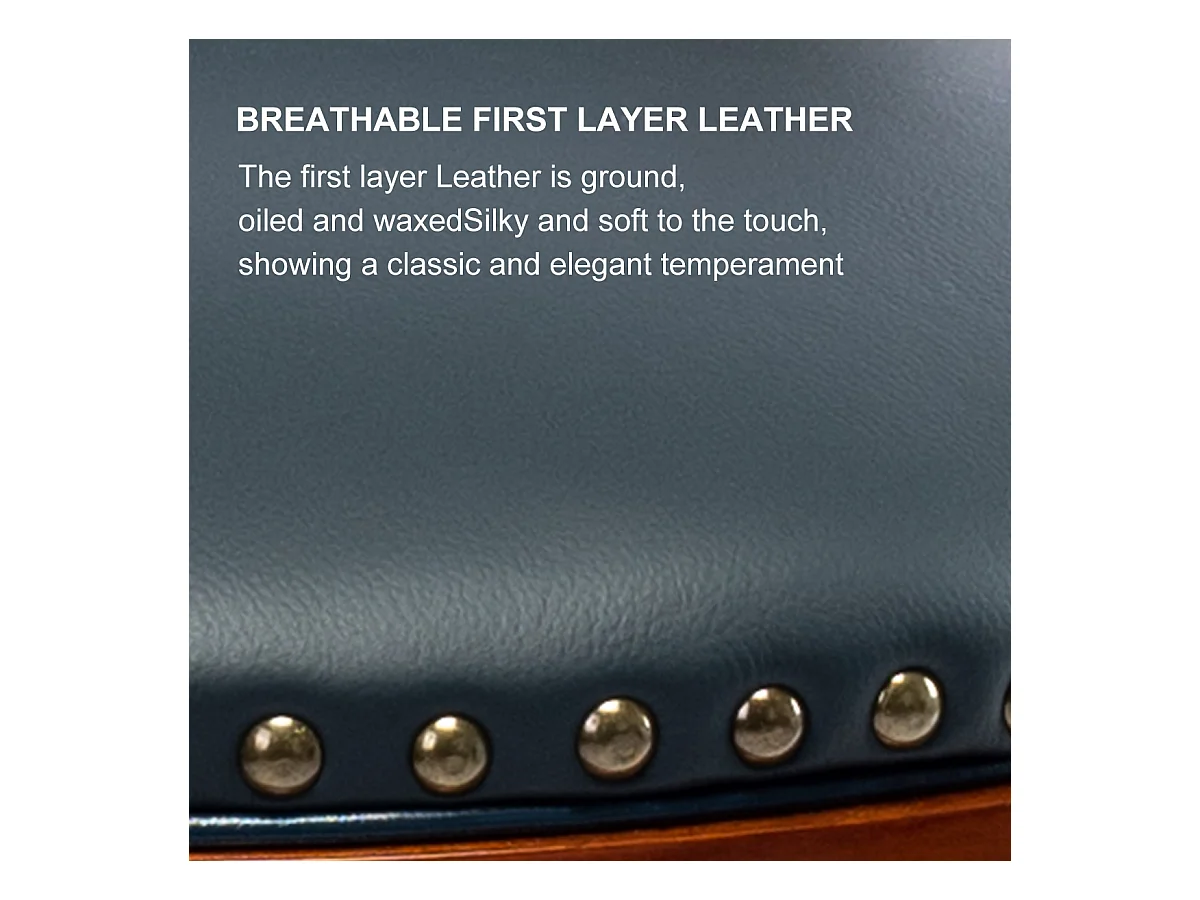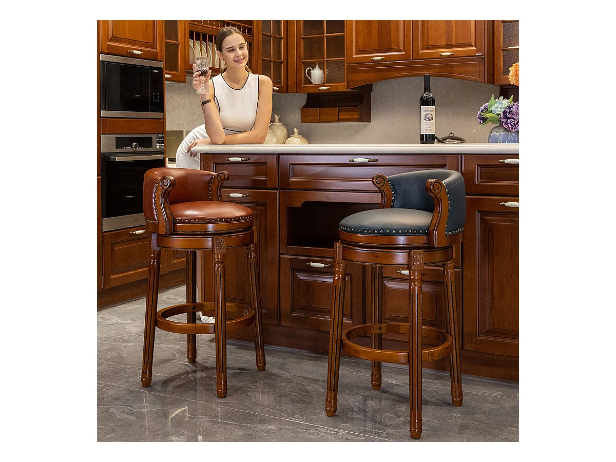Tabouret de bar en cuir véritable avec dossier, pivotant à 360°, cadre en bois, bleu (54.8x54.8x96 cm)