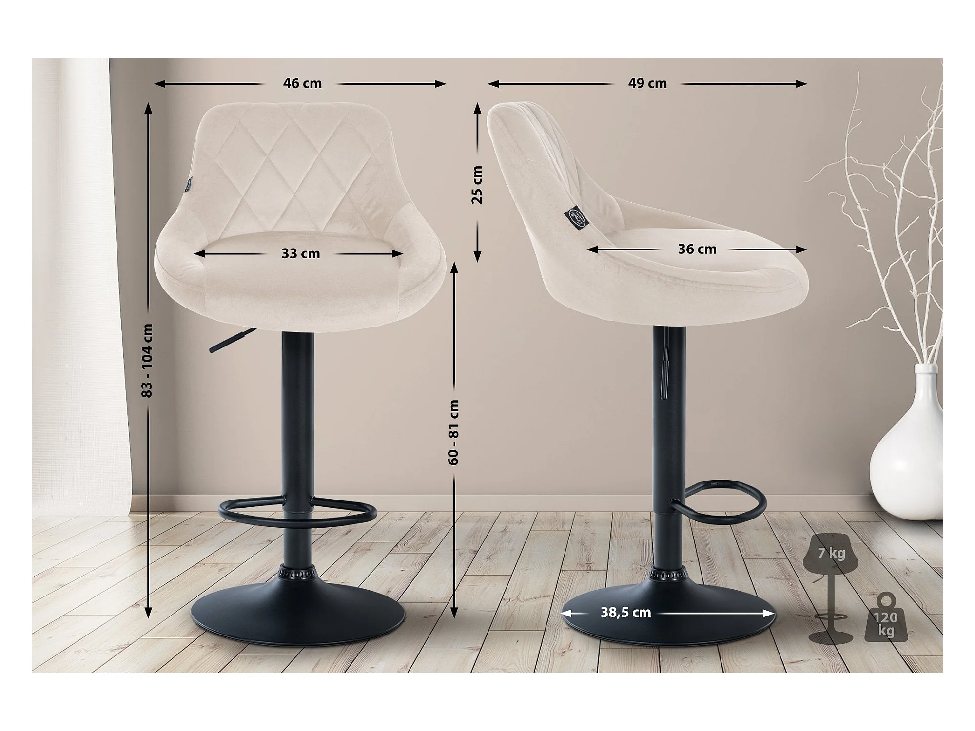 Tabouret de bar en métal crème 46 x 49 x 83 cm TDB10668