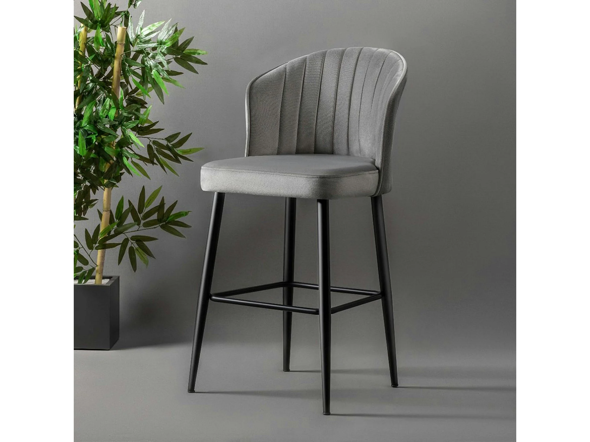 Tabouret de bar en velours gris 65 cm (lot de 2) ROSARIO