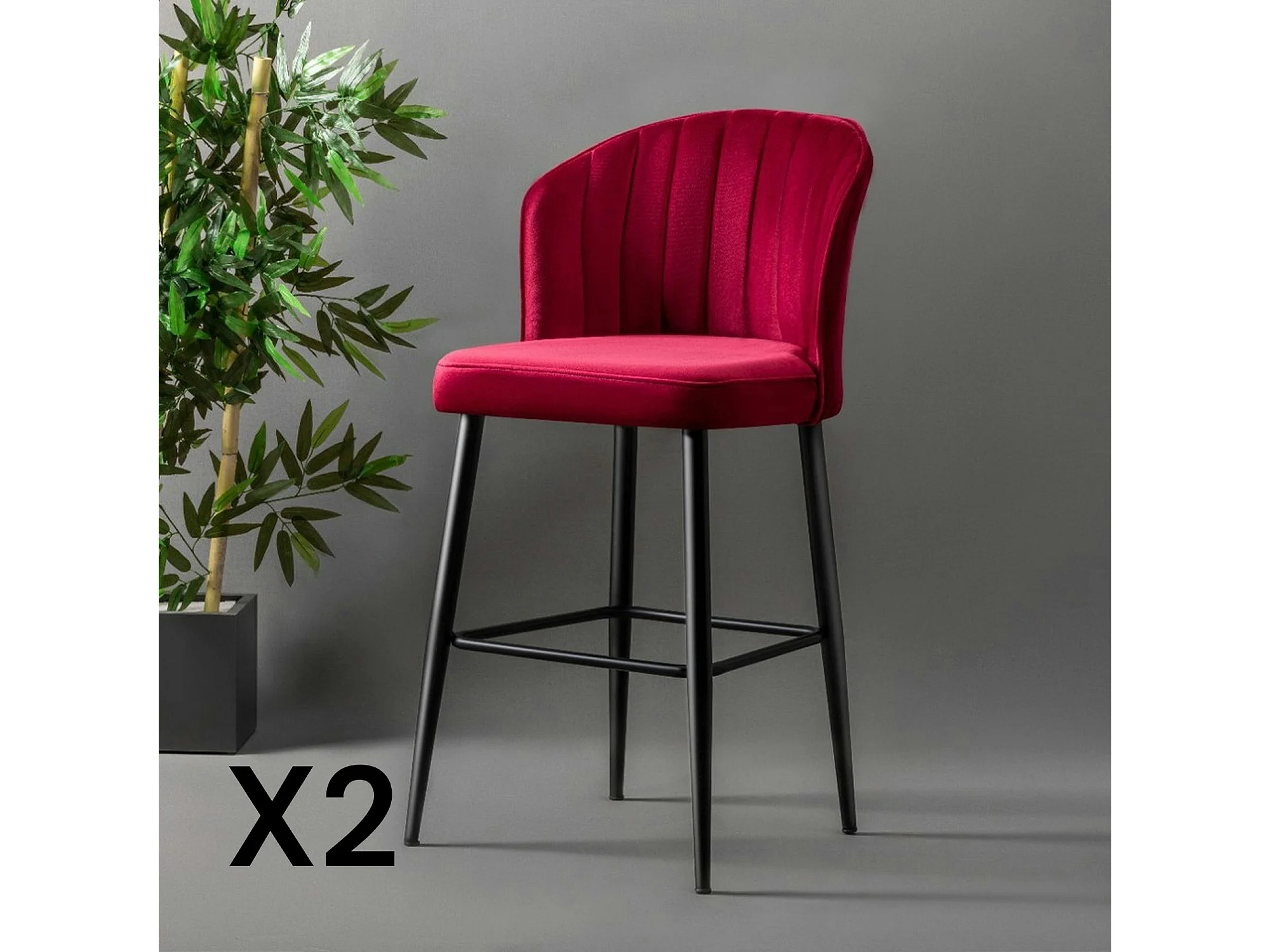 Tabouret de bar en velours rouge 65 cm (lot de 2) ROSARIO