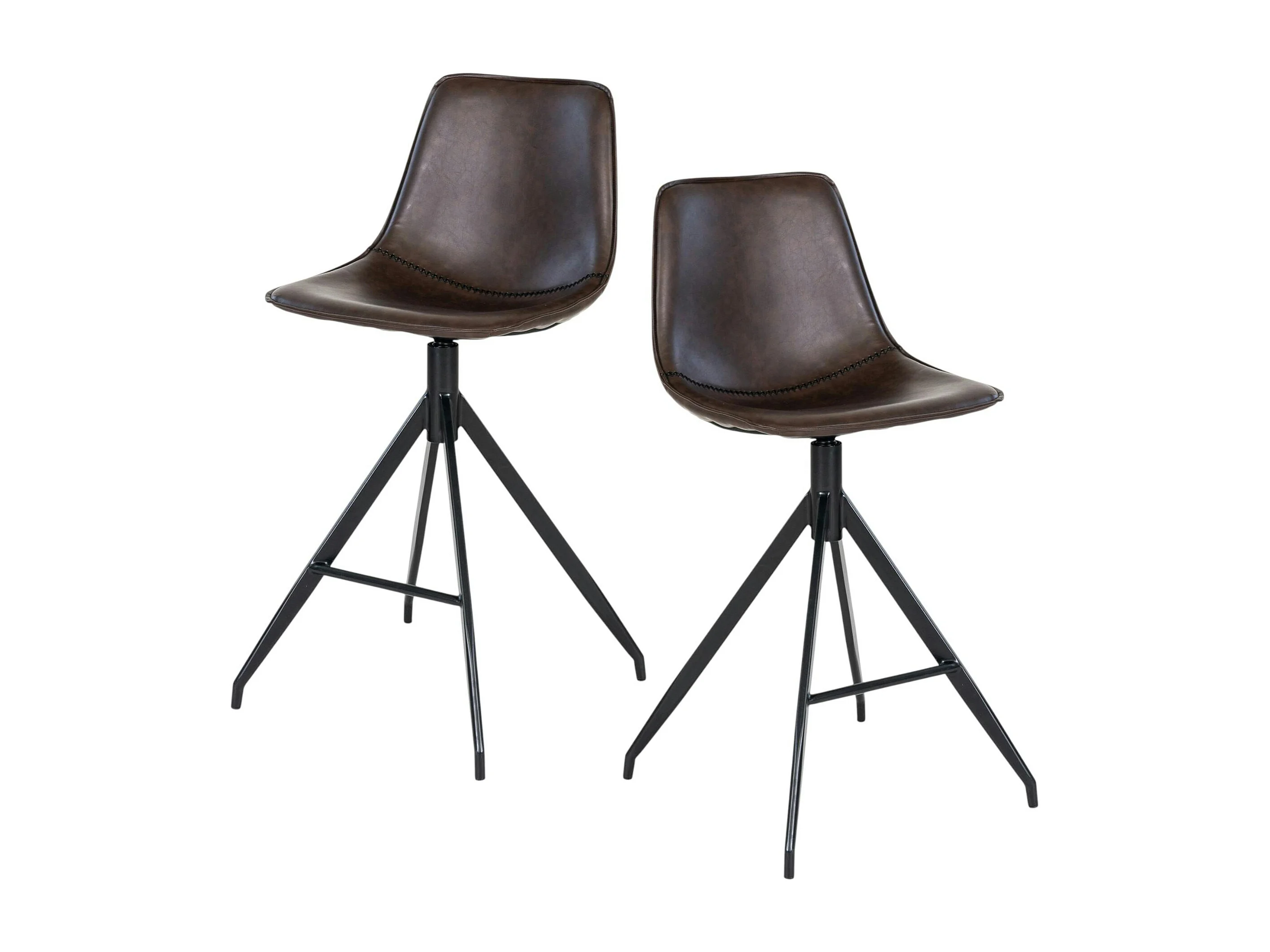 Tabouret de bar marron avec couture (lot de 2) AMSTERDAM