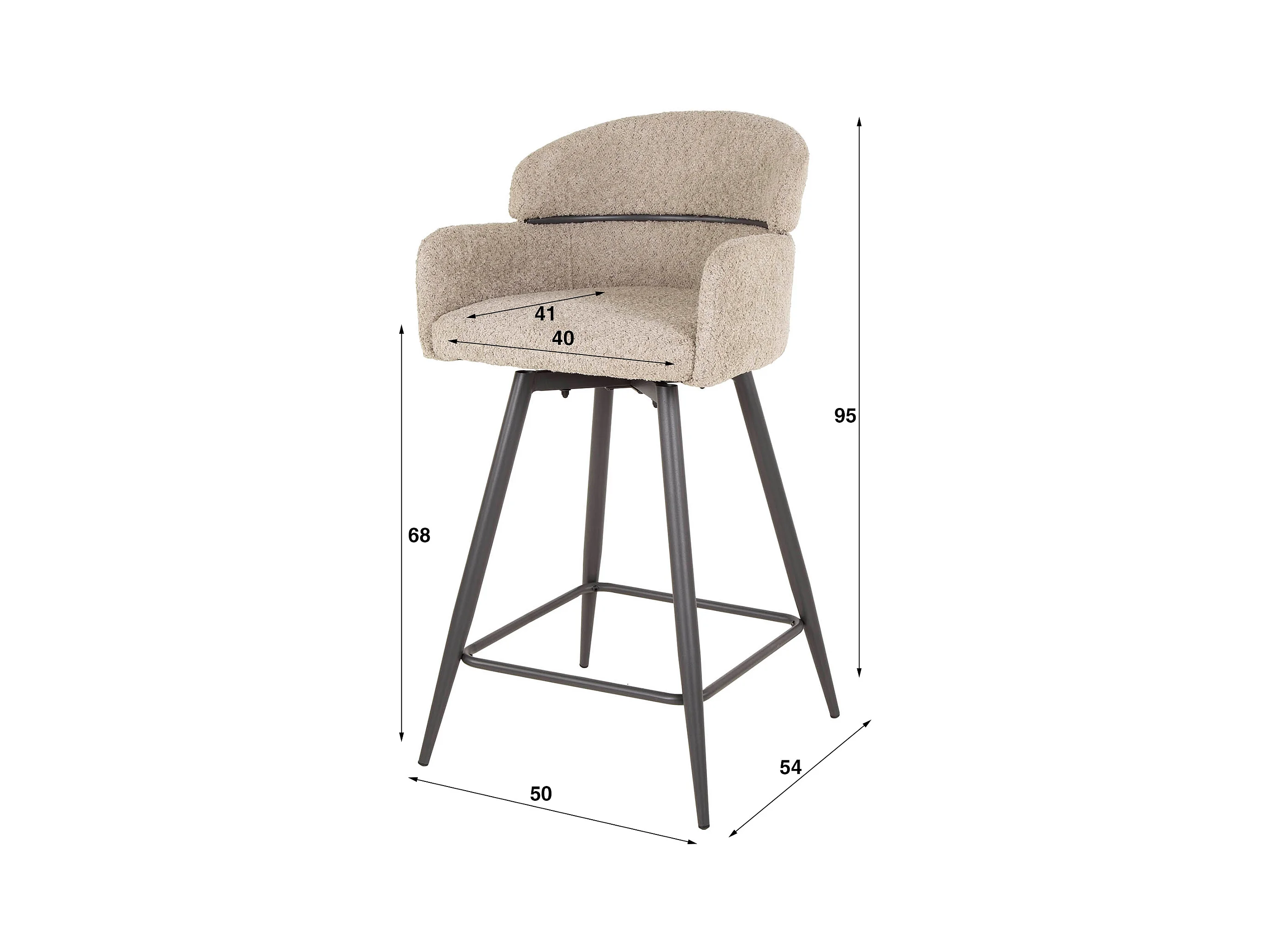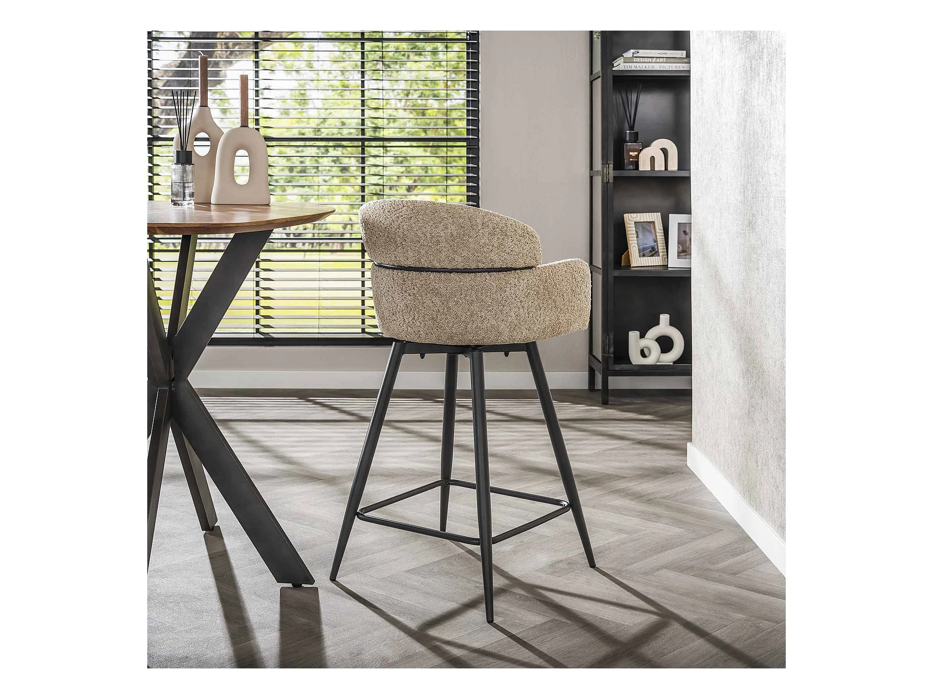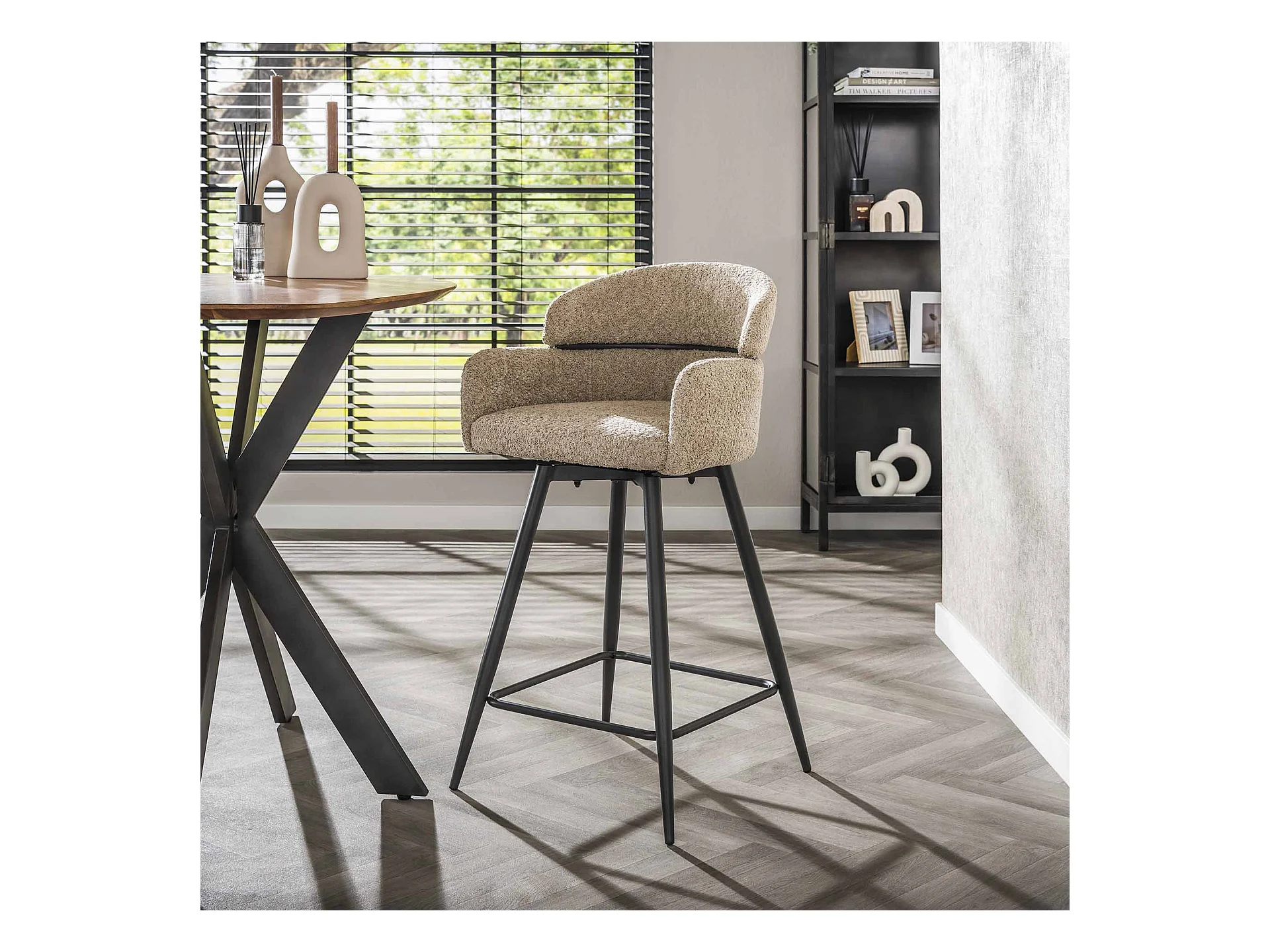 Tabouret de bar pivotant Boucle, dossier rond, 2 pièces - Boucle couleur sable