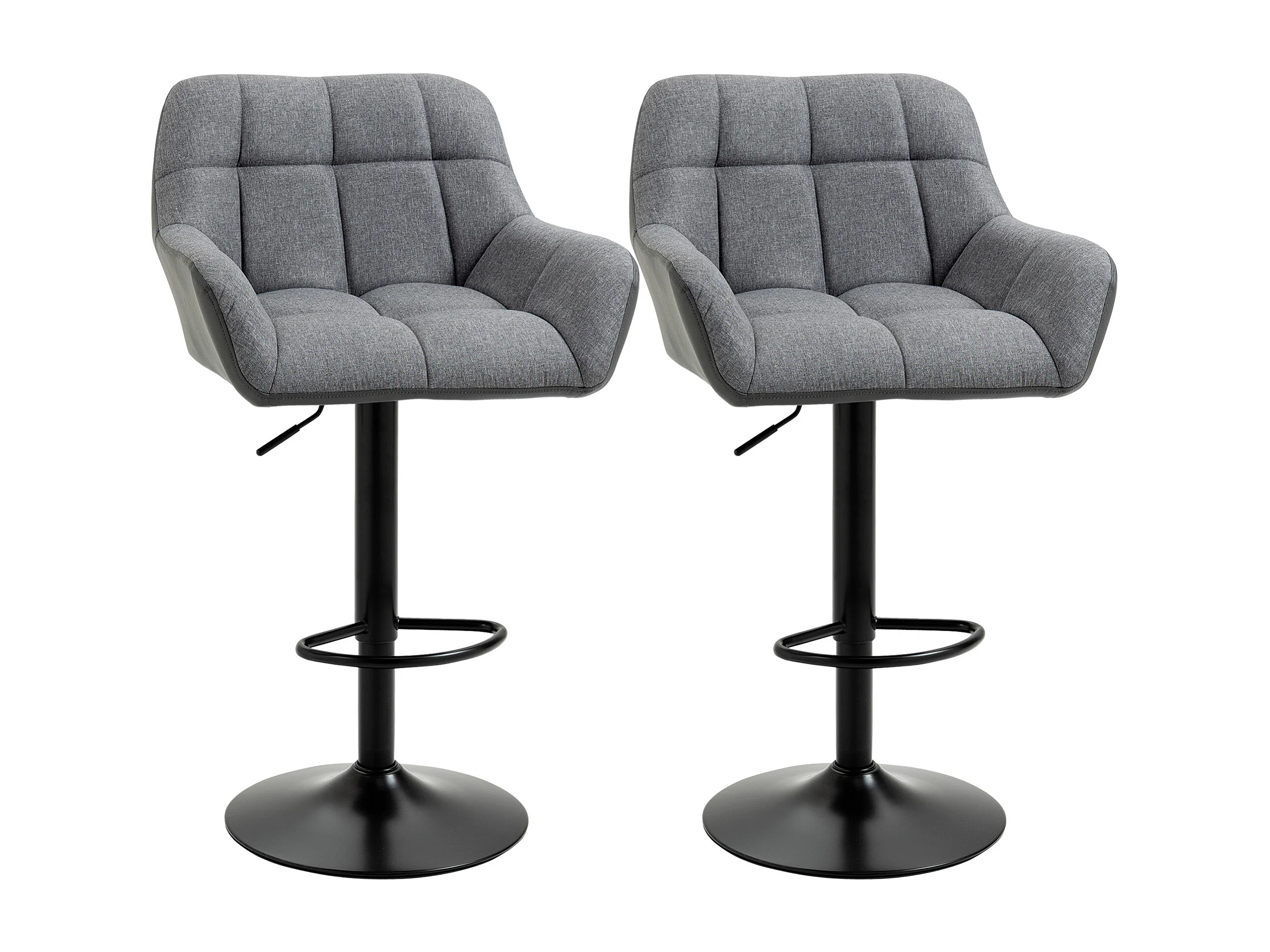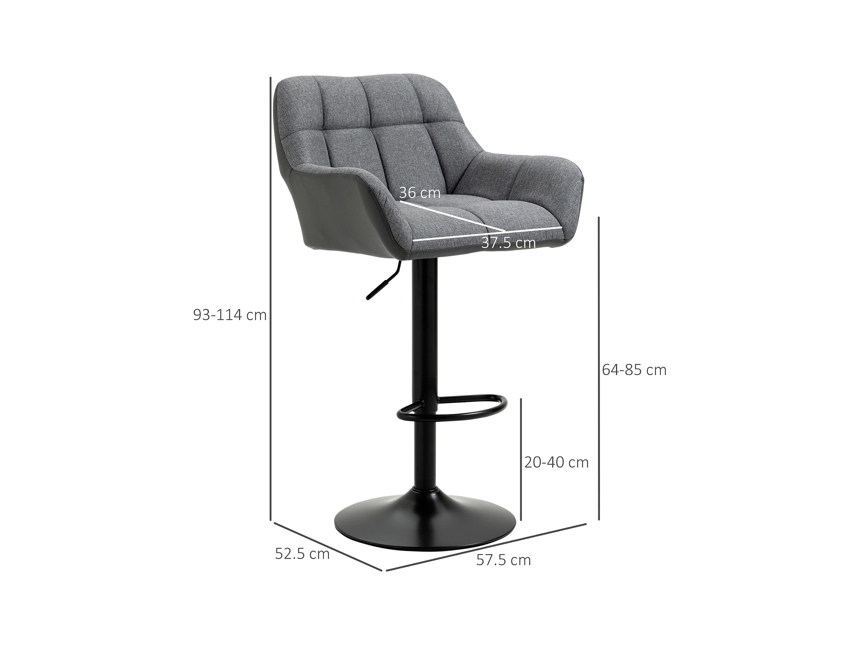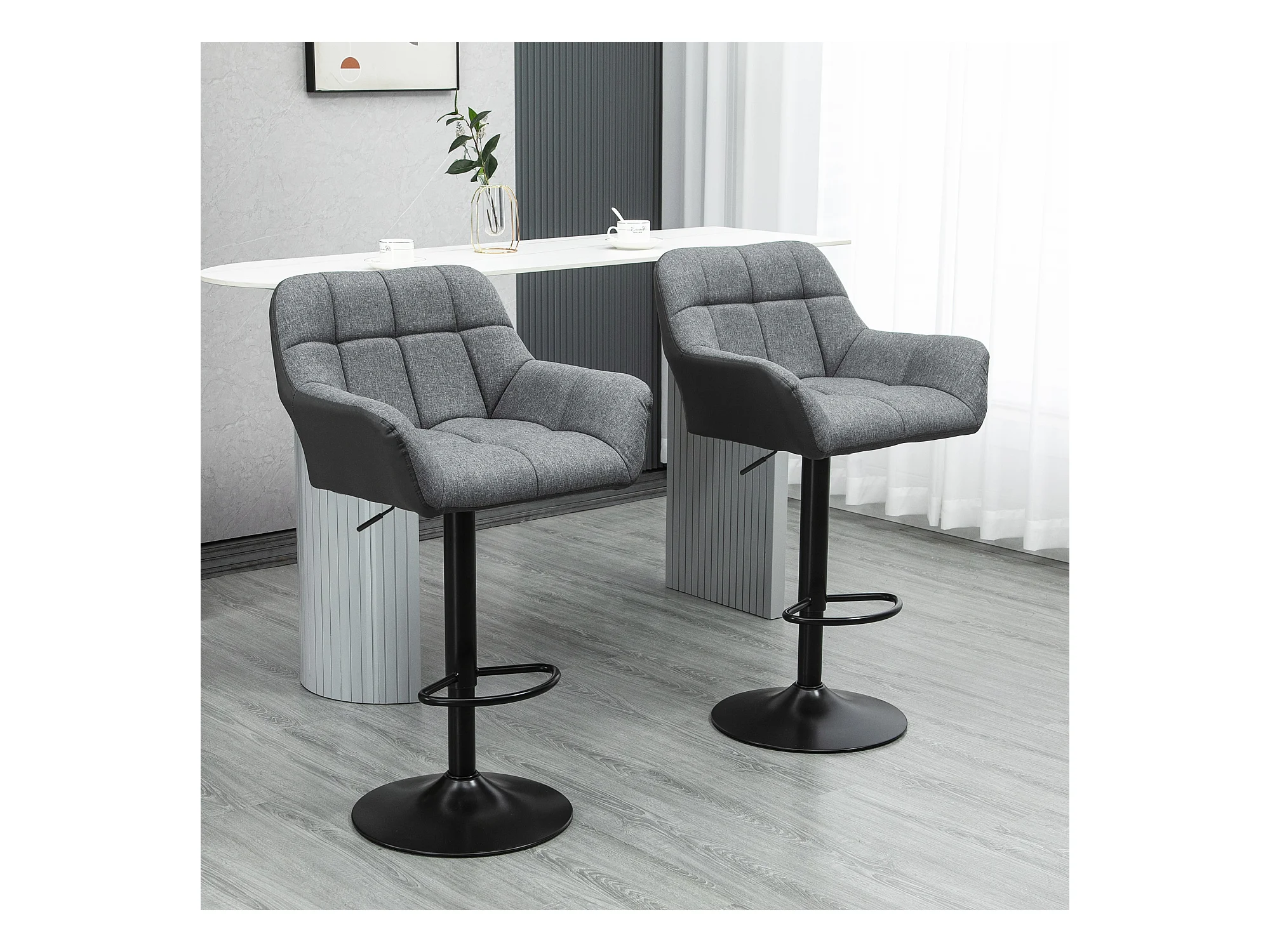 Tabouret de bar réglable 2 pièces avec dossier et repose-pieds, rotation 360°, en simili lin, gris (57.5x52.5x93-114 cm)