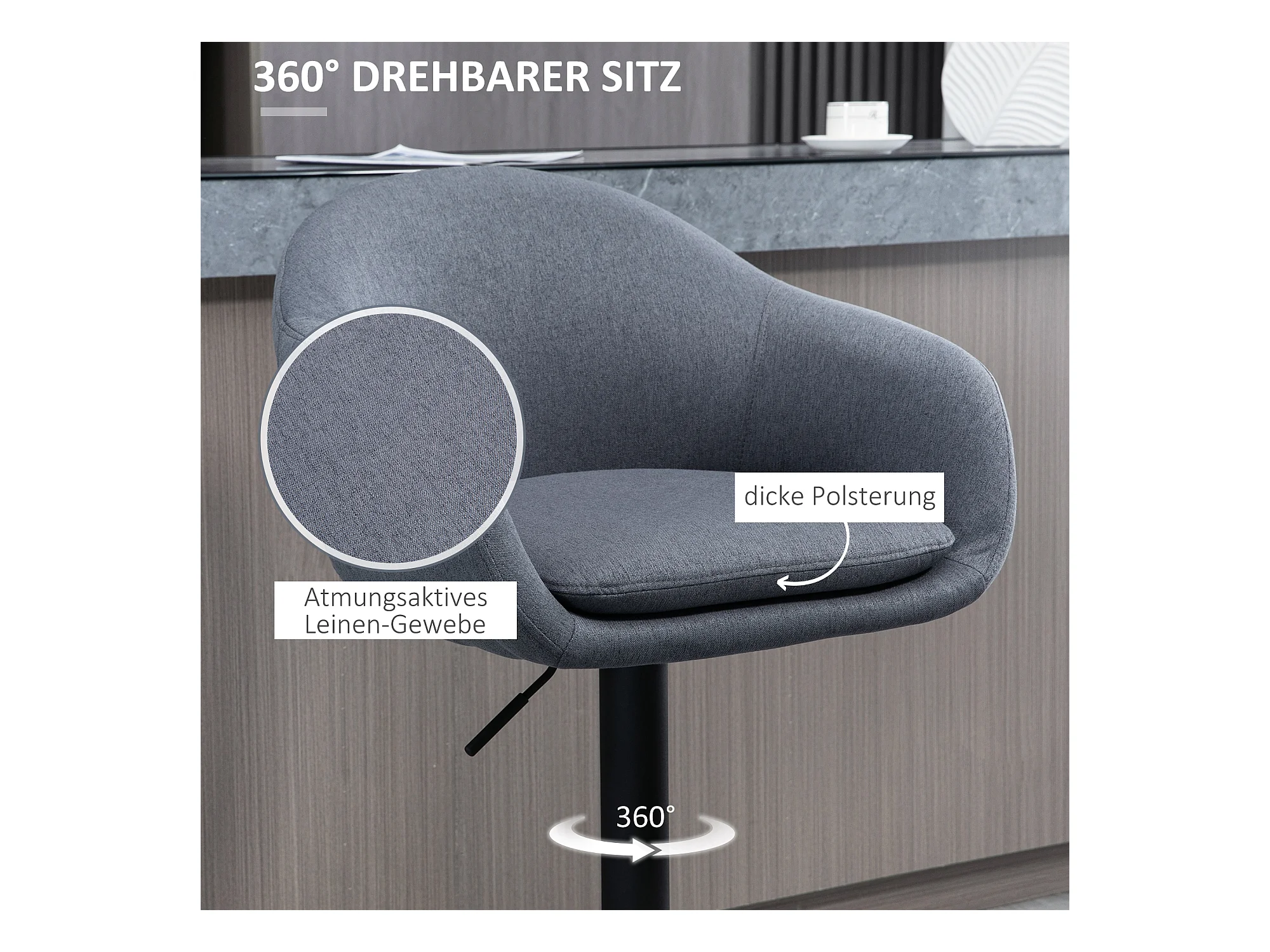 Tabouret de Bar Réglable, Design Moderne, Lin Imprimé, Métal, Gris (54x54x112 cm)