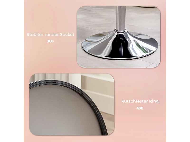 Tabouret de bar, réglable en hauteur et pivotant, rembourré, aspect velours côtelé, avec repose-pieds, structure en métal, rose