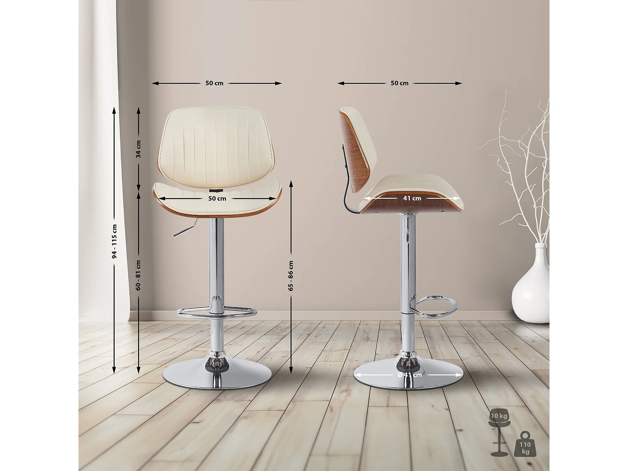 Tabouret de bar - Similicuir & Chrome - Noyer / Crème - Clawson