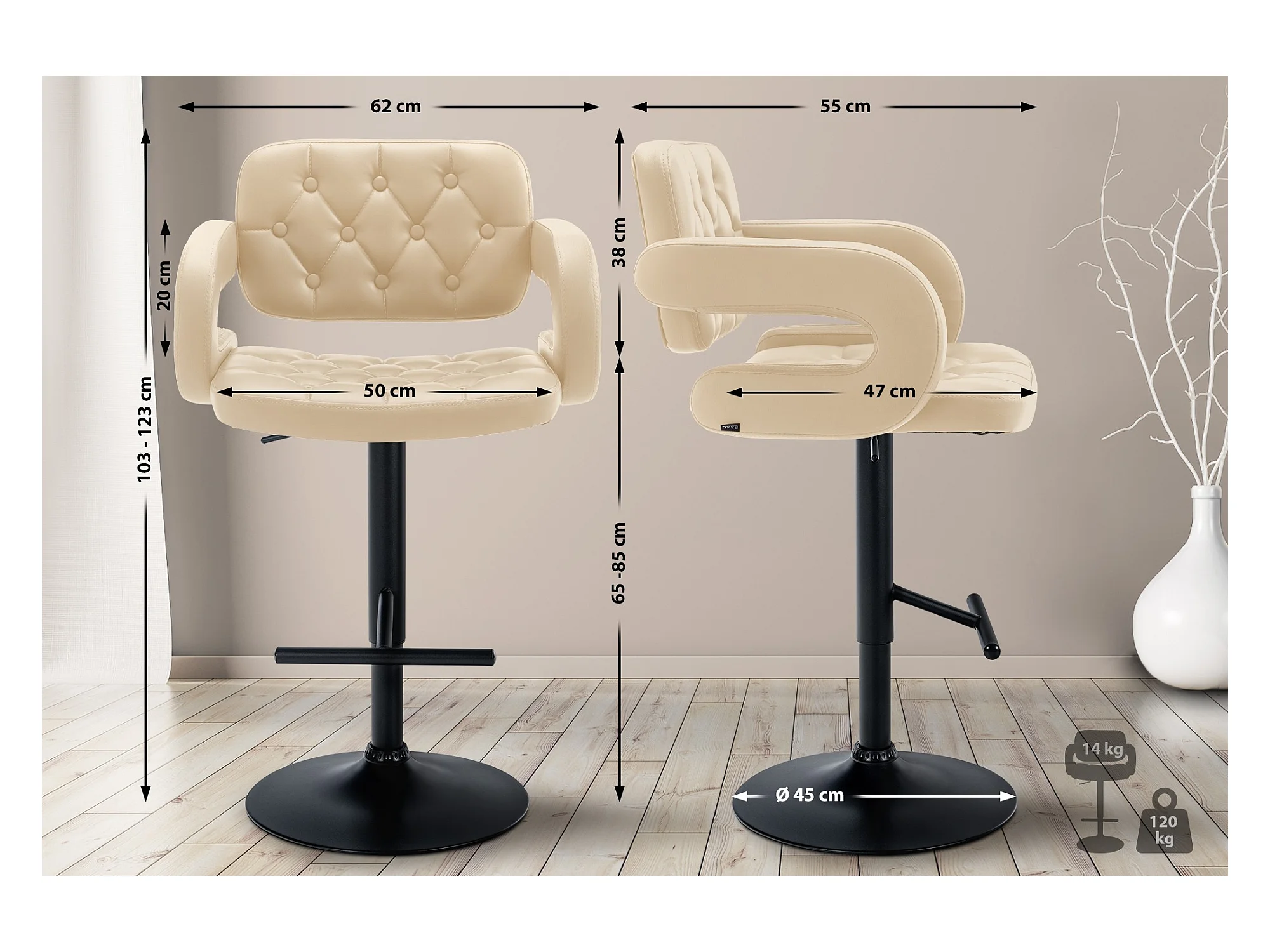 Tabouret de bar - Similicuir & Noir - Crème - Damaso
