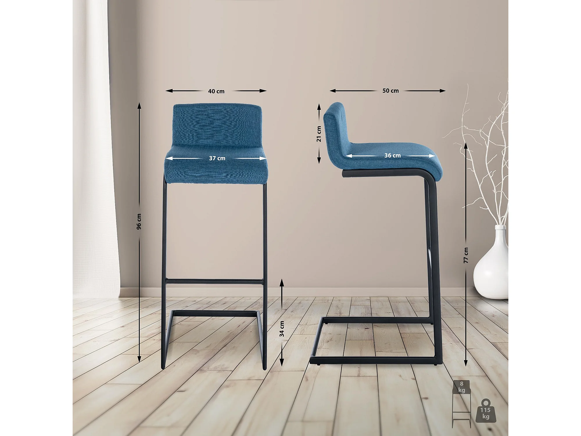 Tabouret de bar - Tissu & Noir - Bleu - Lazio