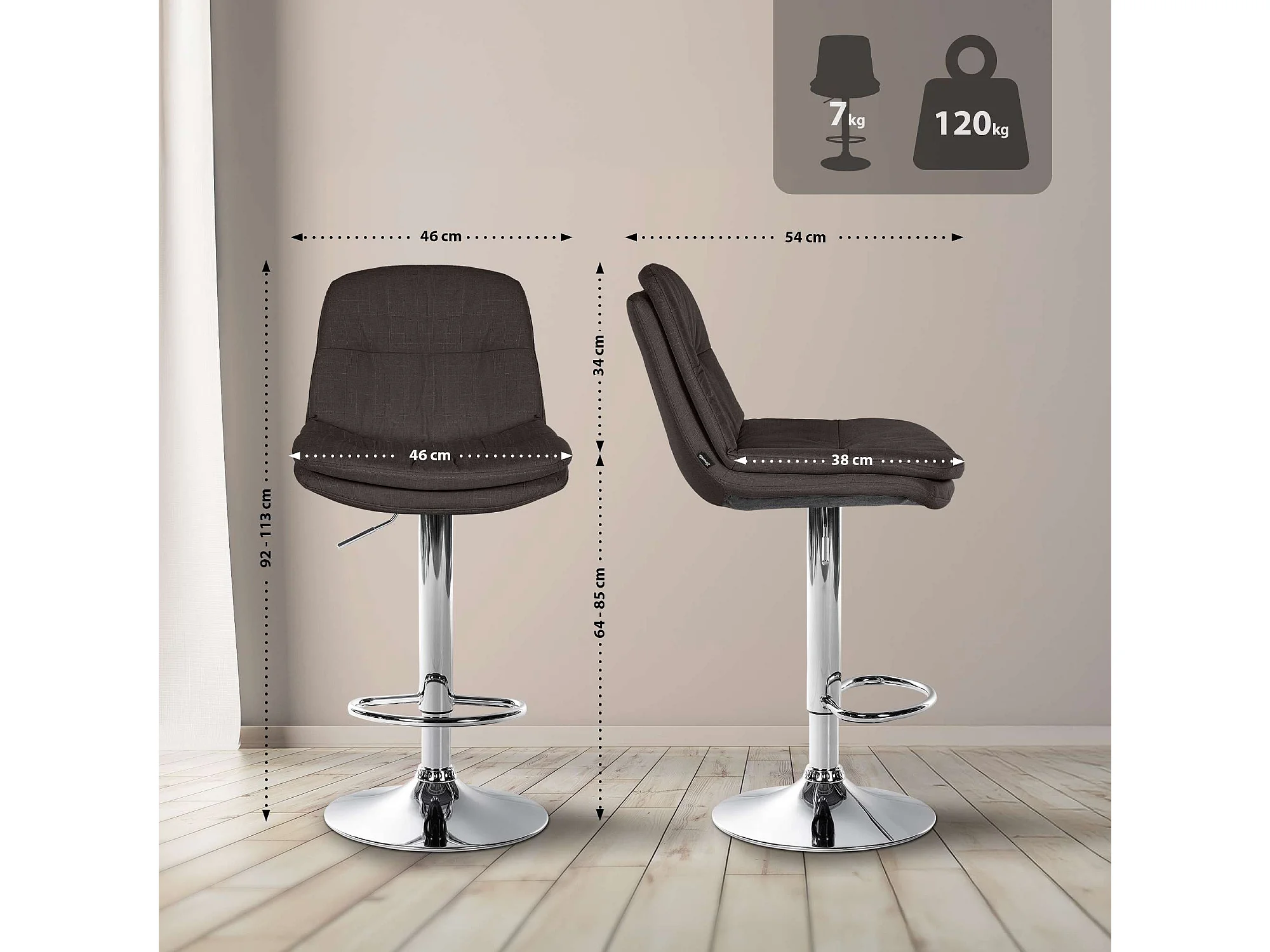 Tabouret de bar - Tissu & Métal chromé - Gris foncé - Shanghai