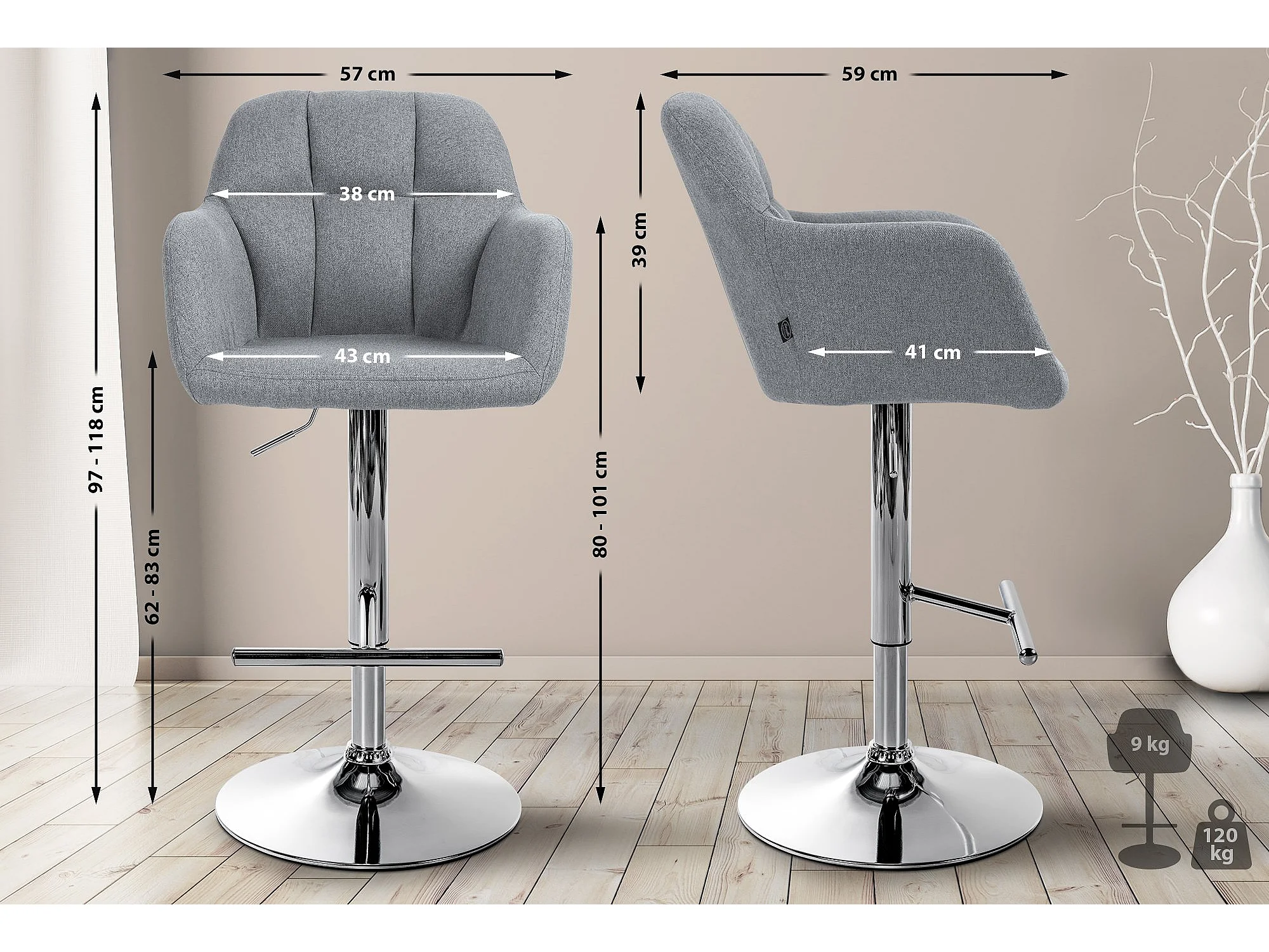 Tabouret de bar gris hauteur ajustable