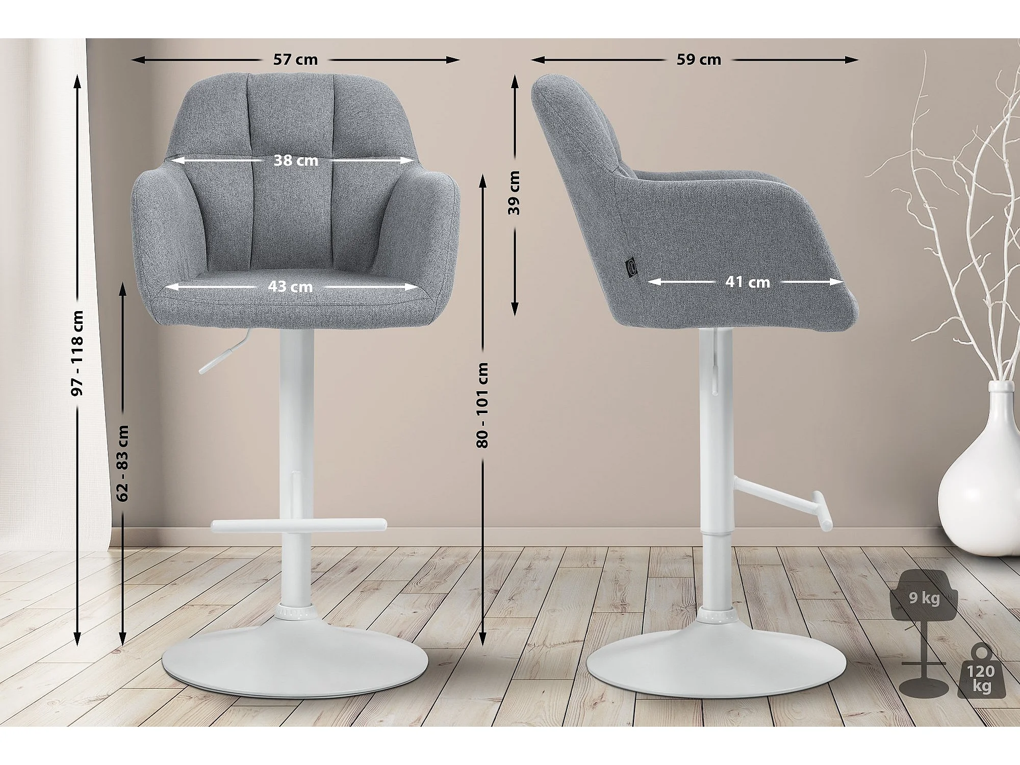 Tabouret de bar - Tissu & Blanc - Gris foncé - Damaso