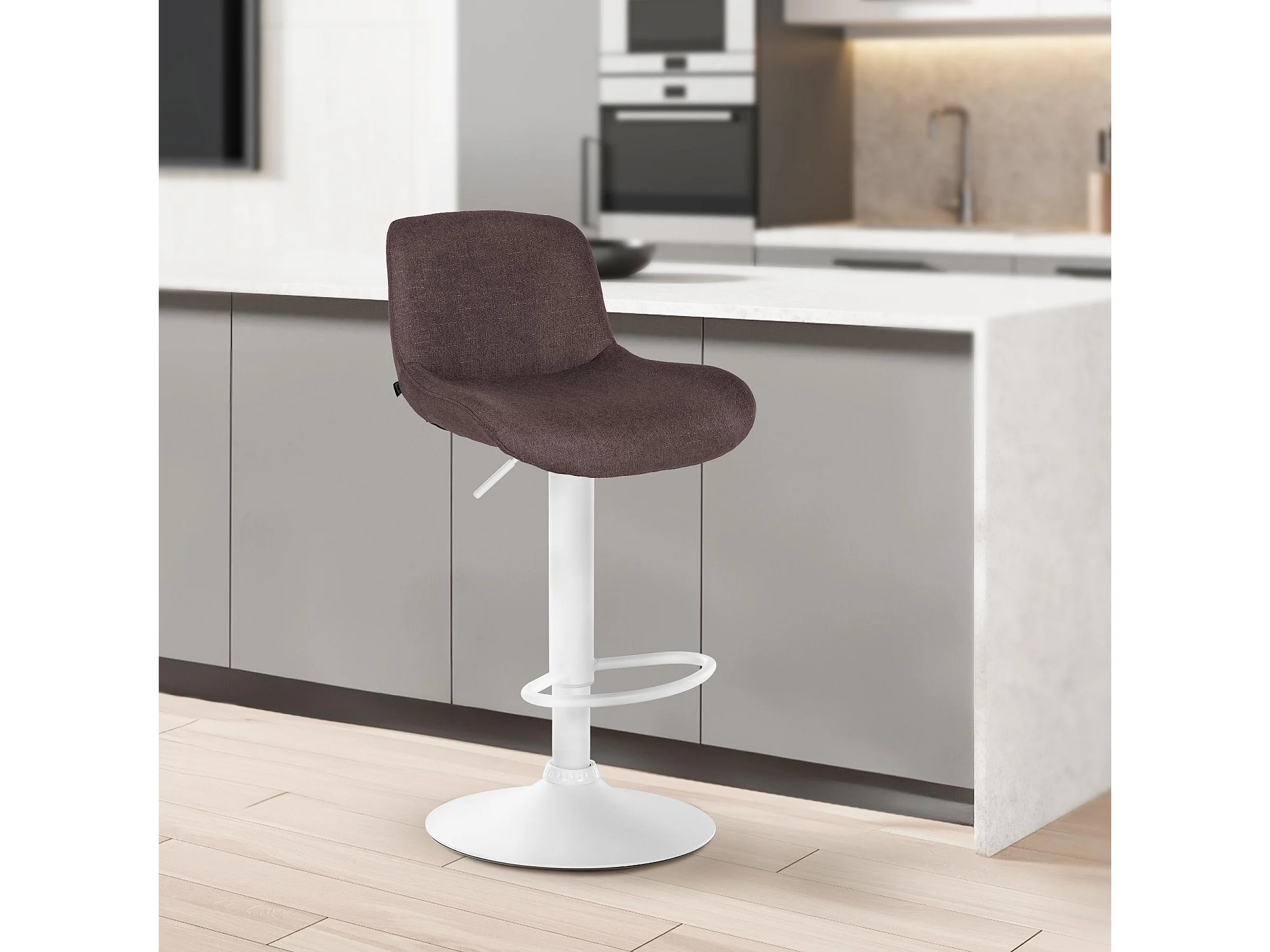 Tabouret de bar - Tissu & Blanc - Marron - Lazio
