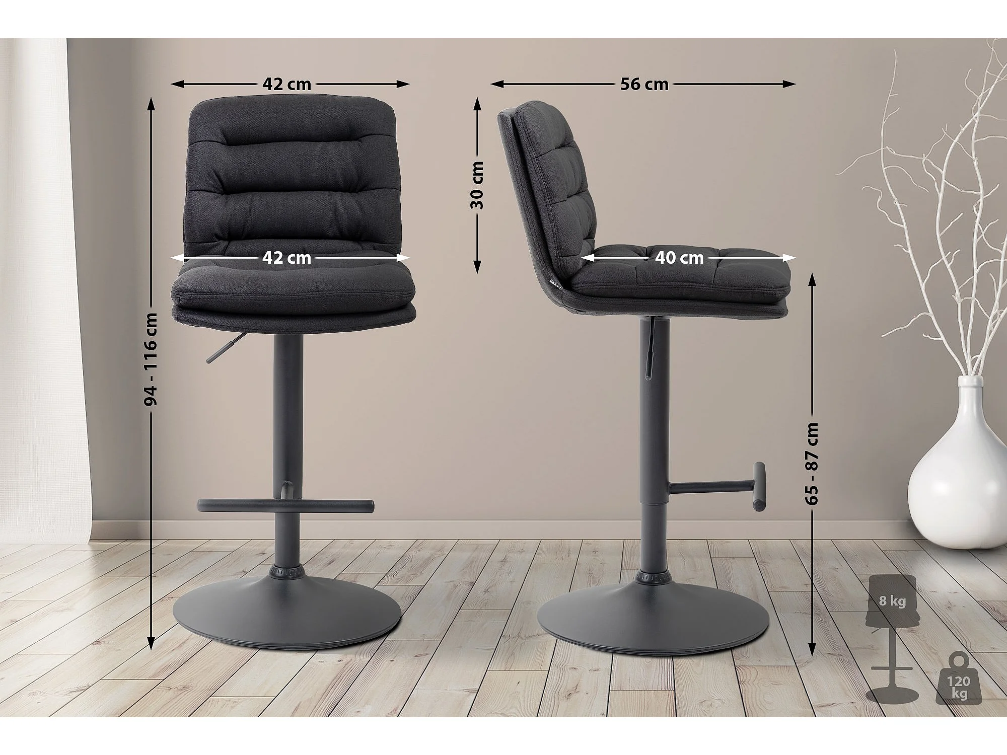 Tabouret de bar - Tissu & Noir - Noir - Lazio