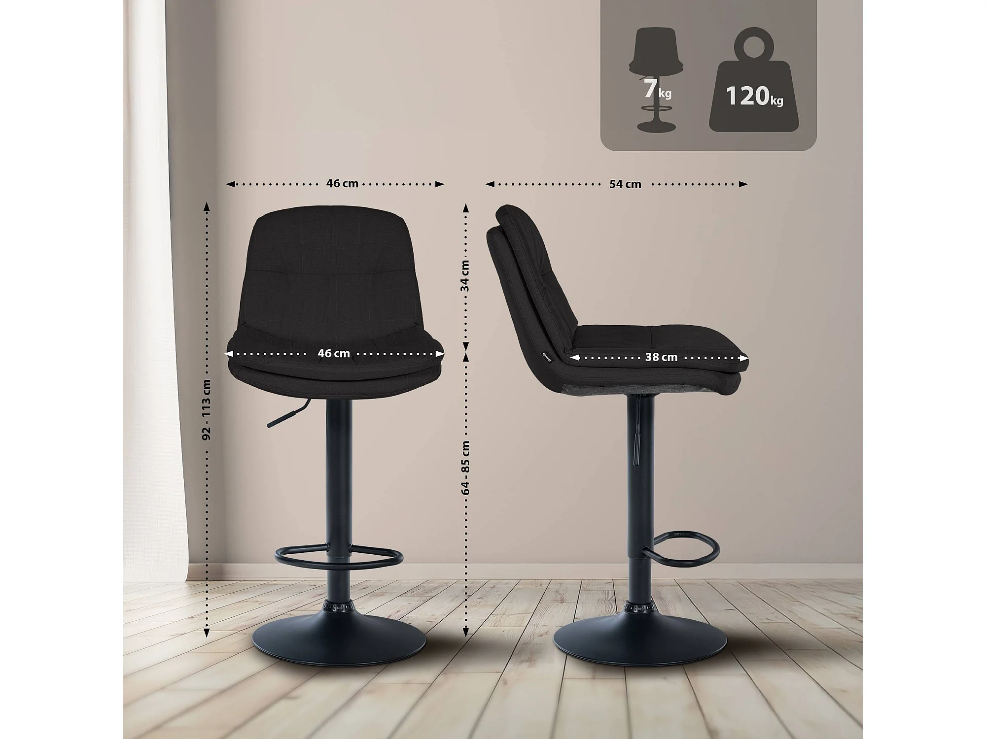 Tabouret de bar - Tissu & Blanc - Noir - Lazio