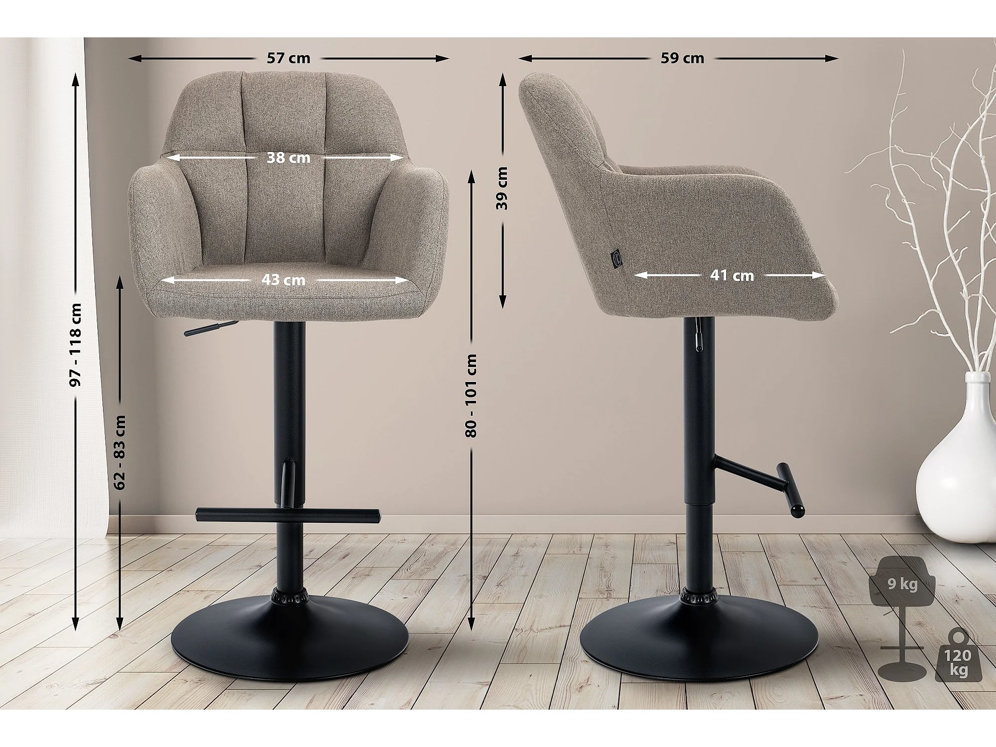 Tabouret de bar - Tissu & Noir - Taupe - Lazio