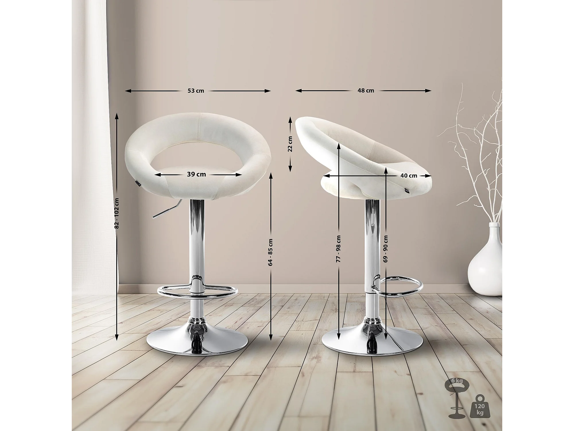 Tabouret de bar - Velours & Chrome - Crème - Peru