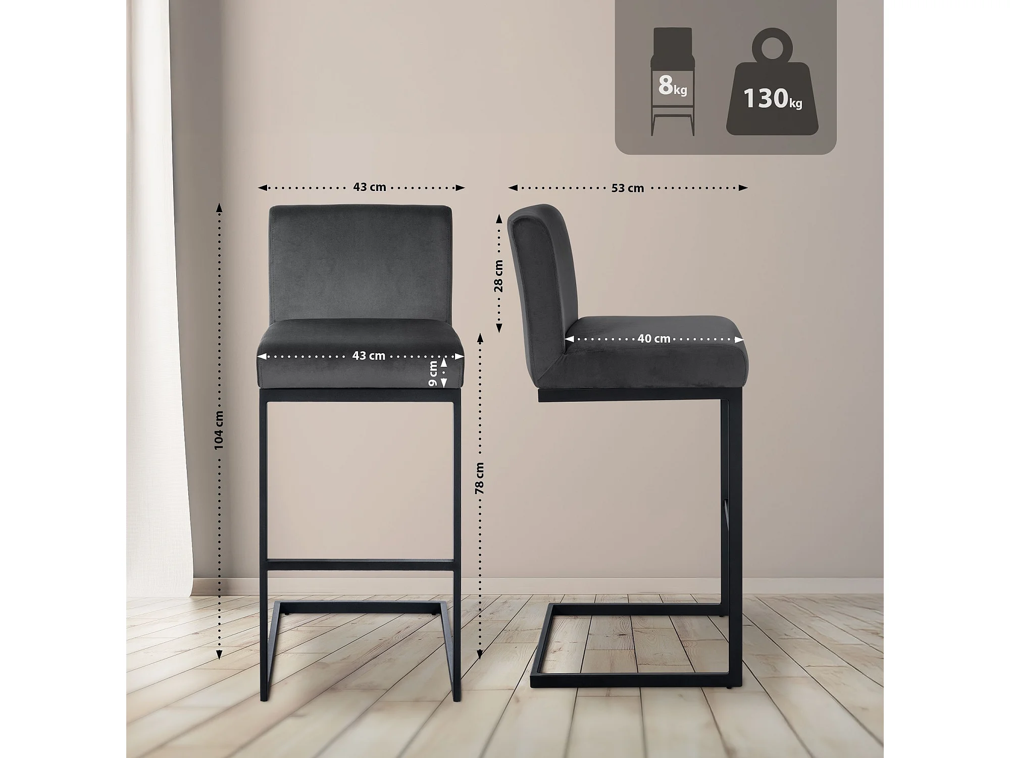 Tabouret de bar - Velours & Noir - Gris foncé - Peru
