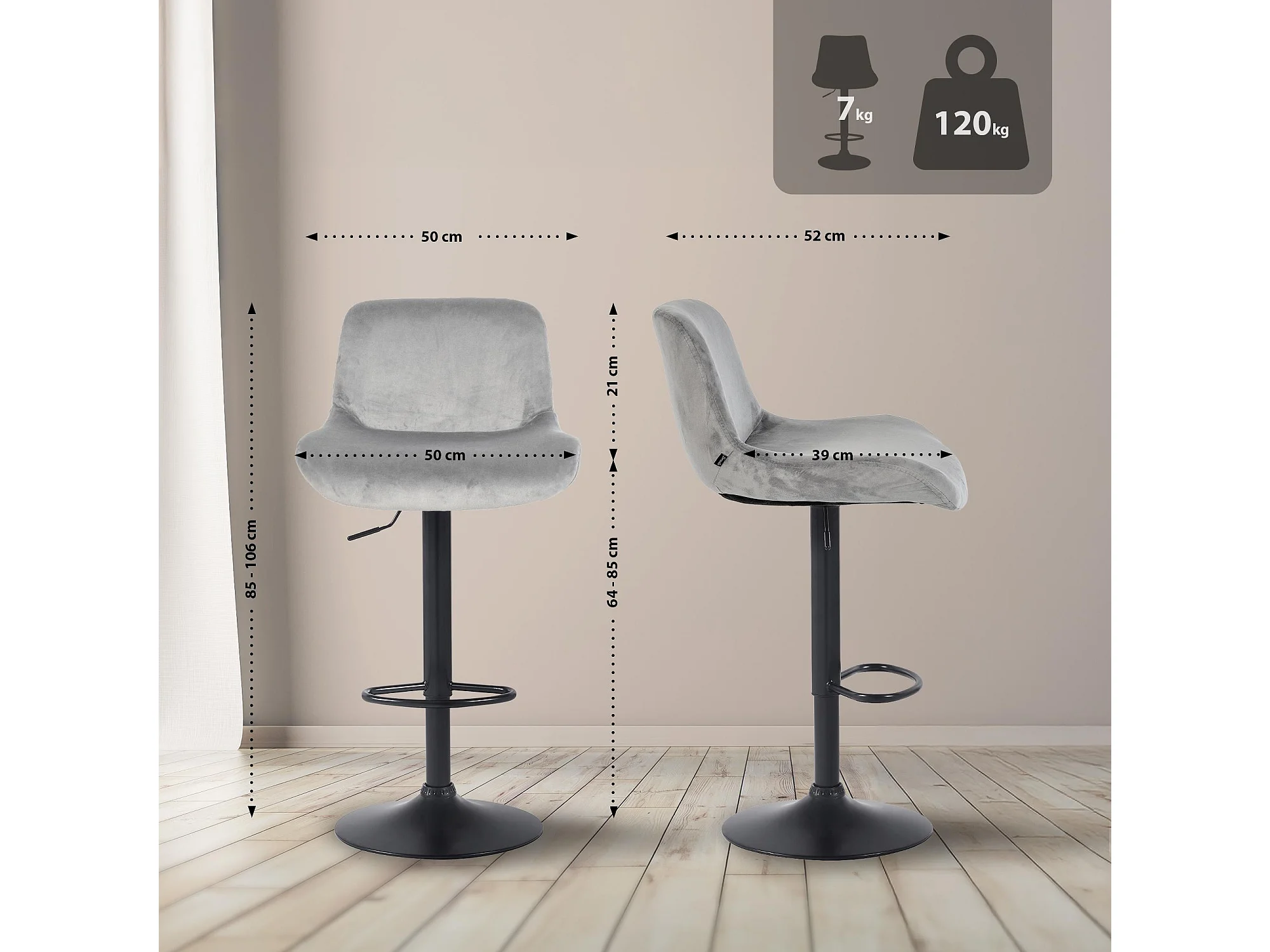 Tabouret de bar - Velours - Gris foncé - Kasson