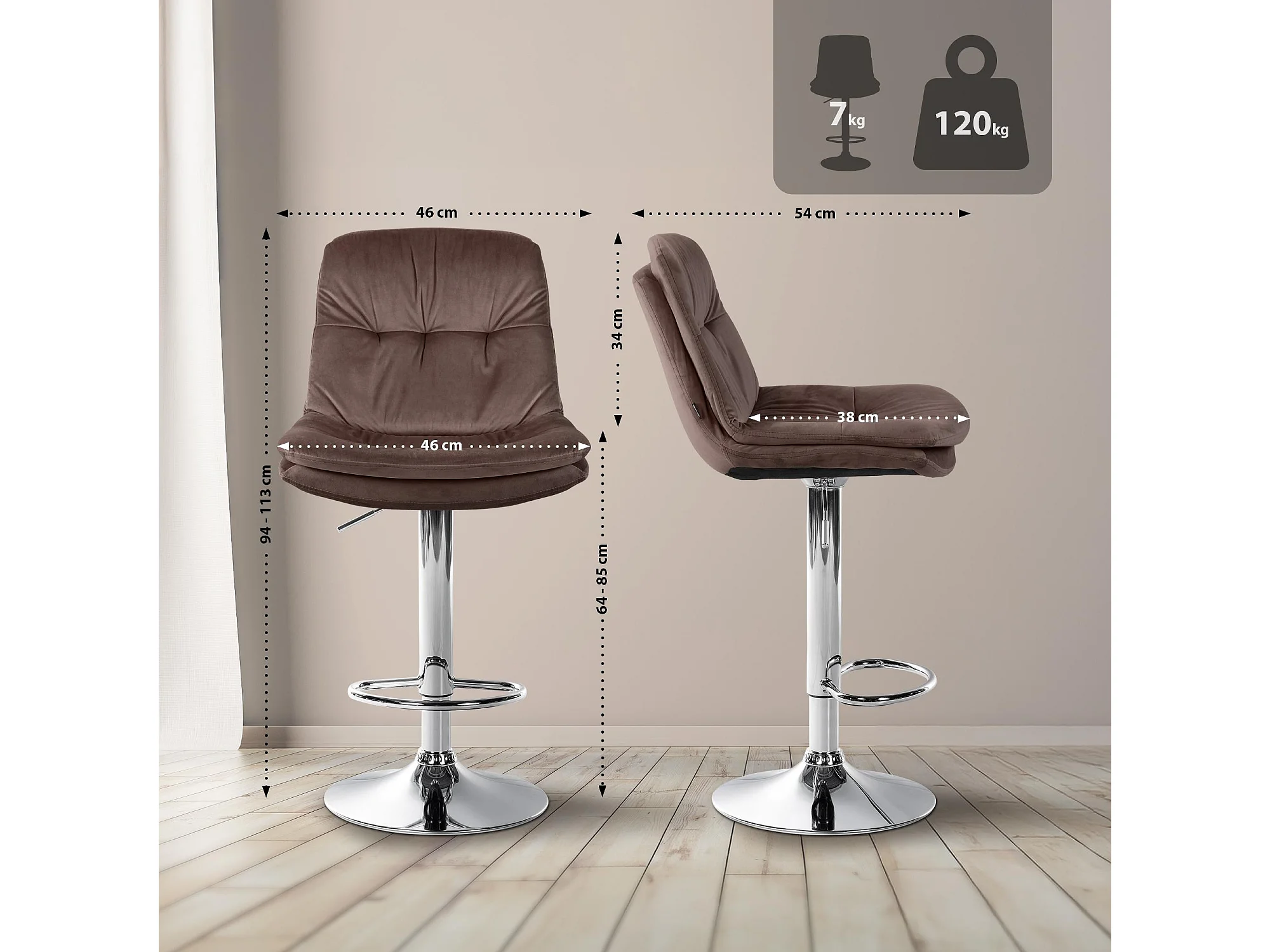 Tabouret de bar - Velours & Chrome - Marron - Milet
