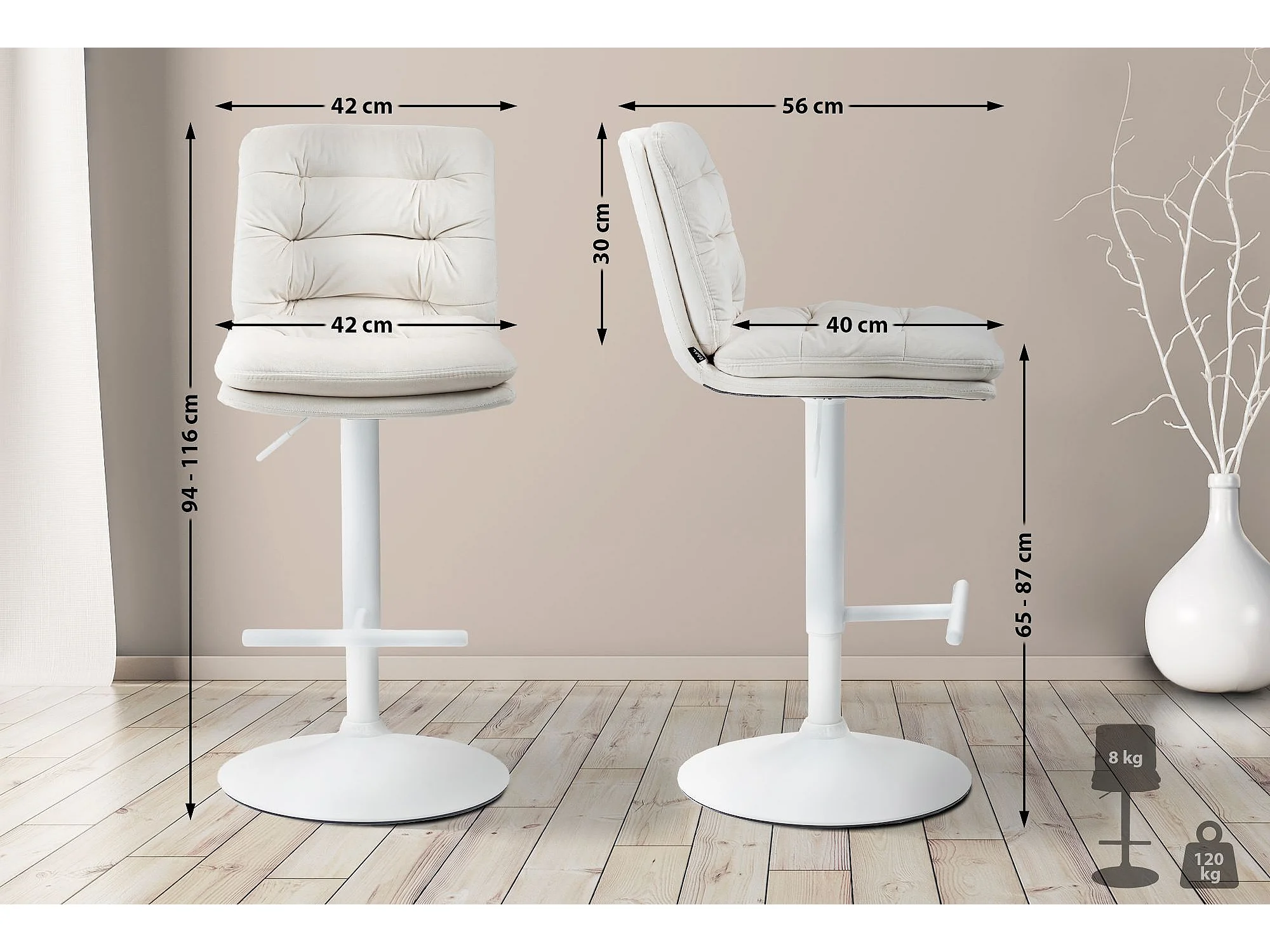 Tabouret de bar - Velours & Blanc - Crème - Peru