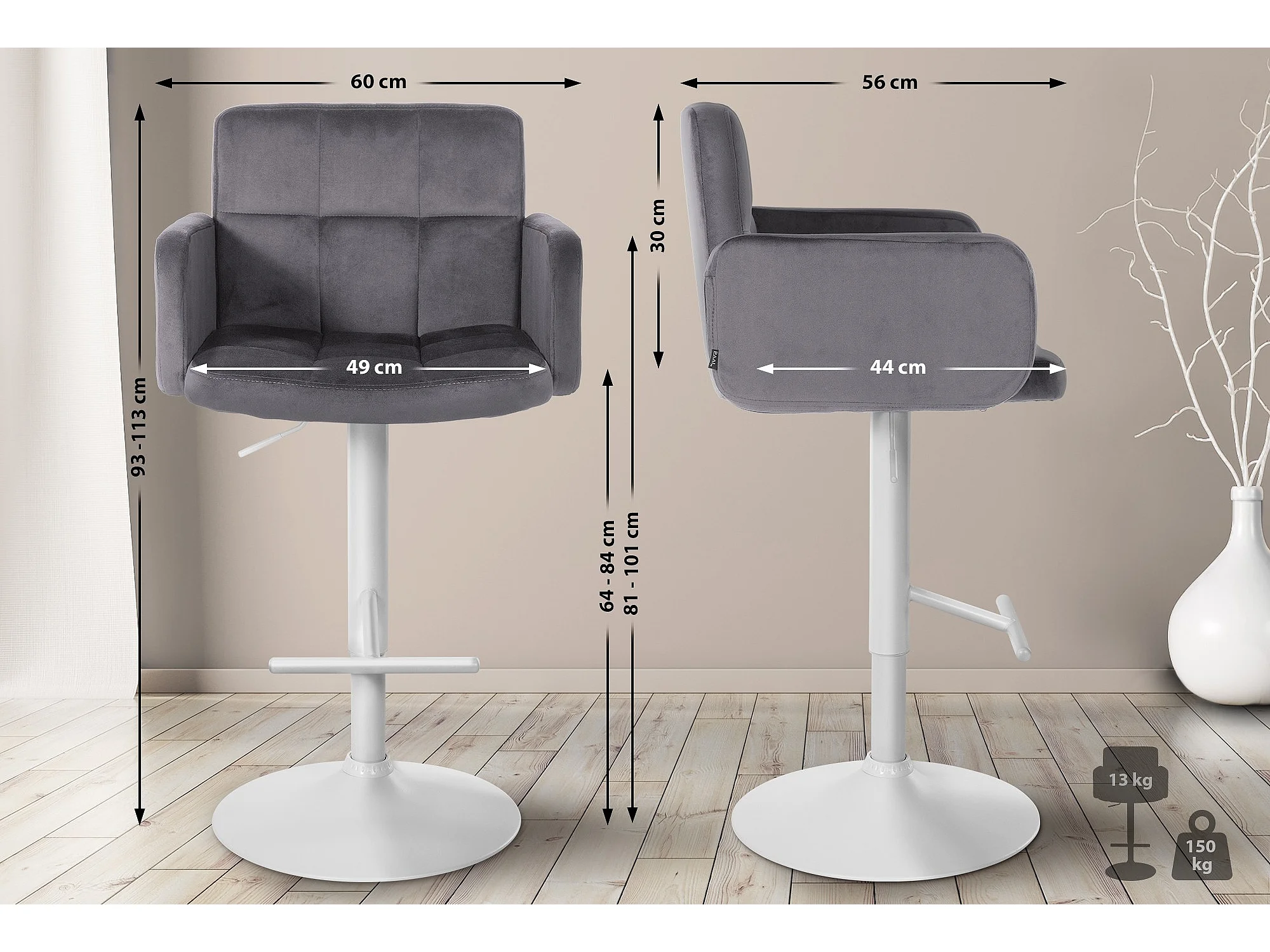 Tabouret de bar gris hauteur ajustable