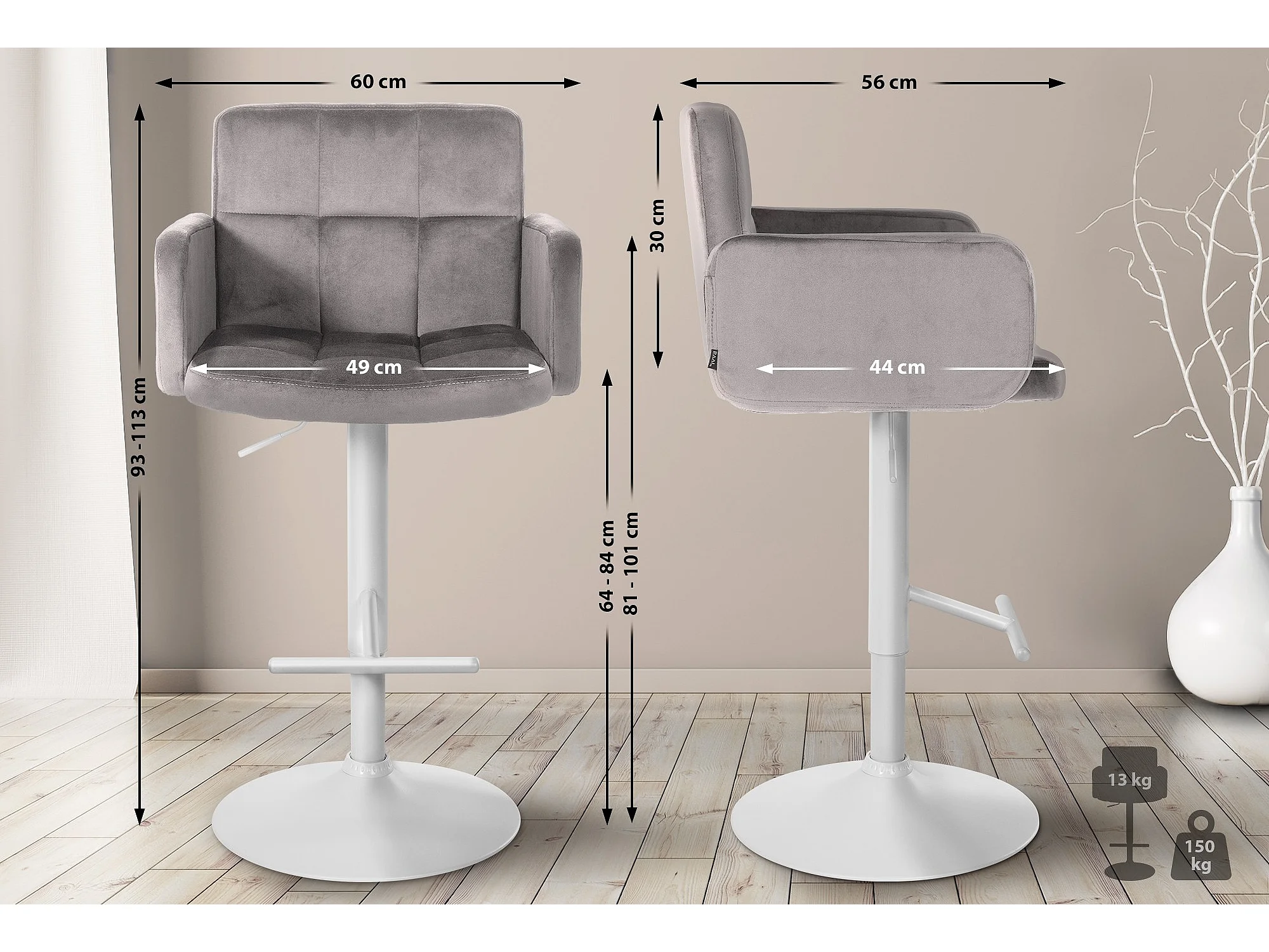 Tabouret de bar - Velours & Blanc - Gris - Damaso