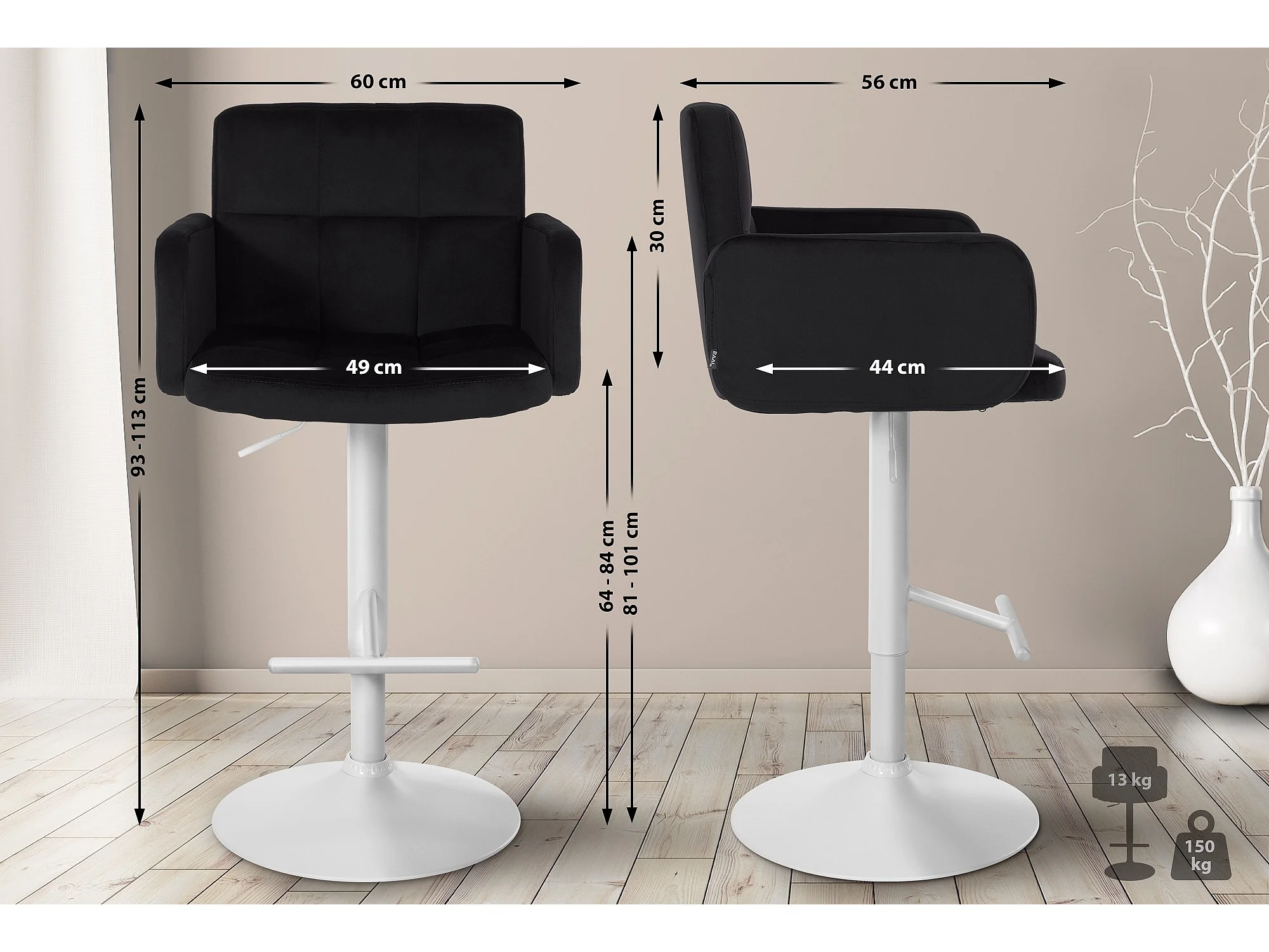 Tabouret de bar - Velours & Blanc - Noir - Braga