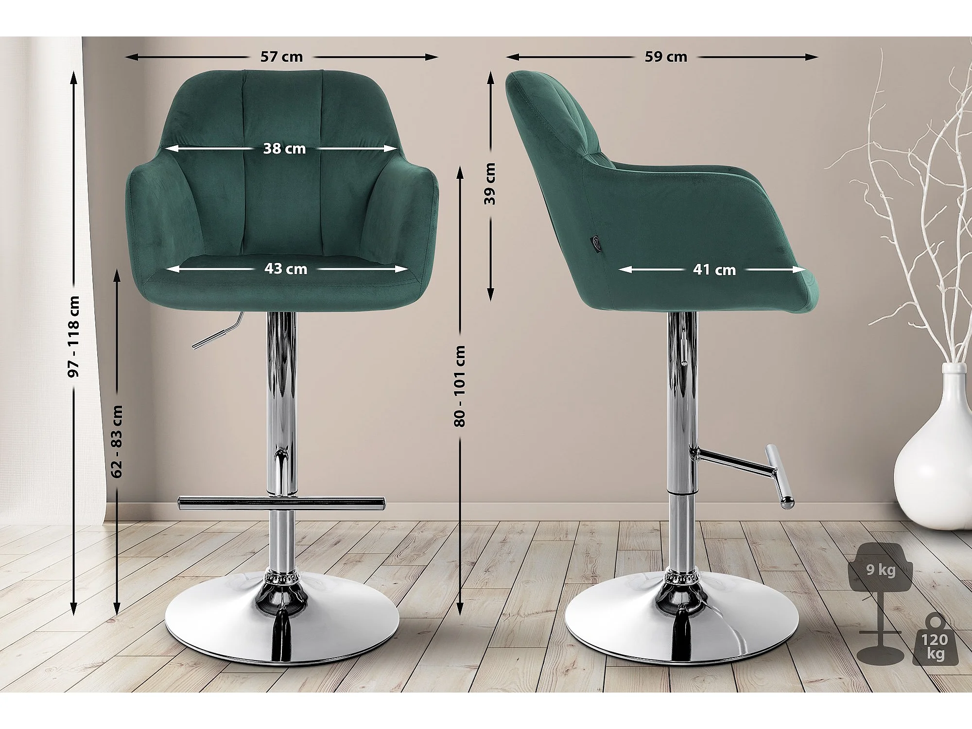 Tabouret de bar - Velours & Chrome - Vert - Peru